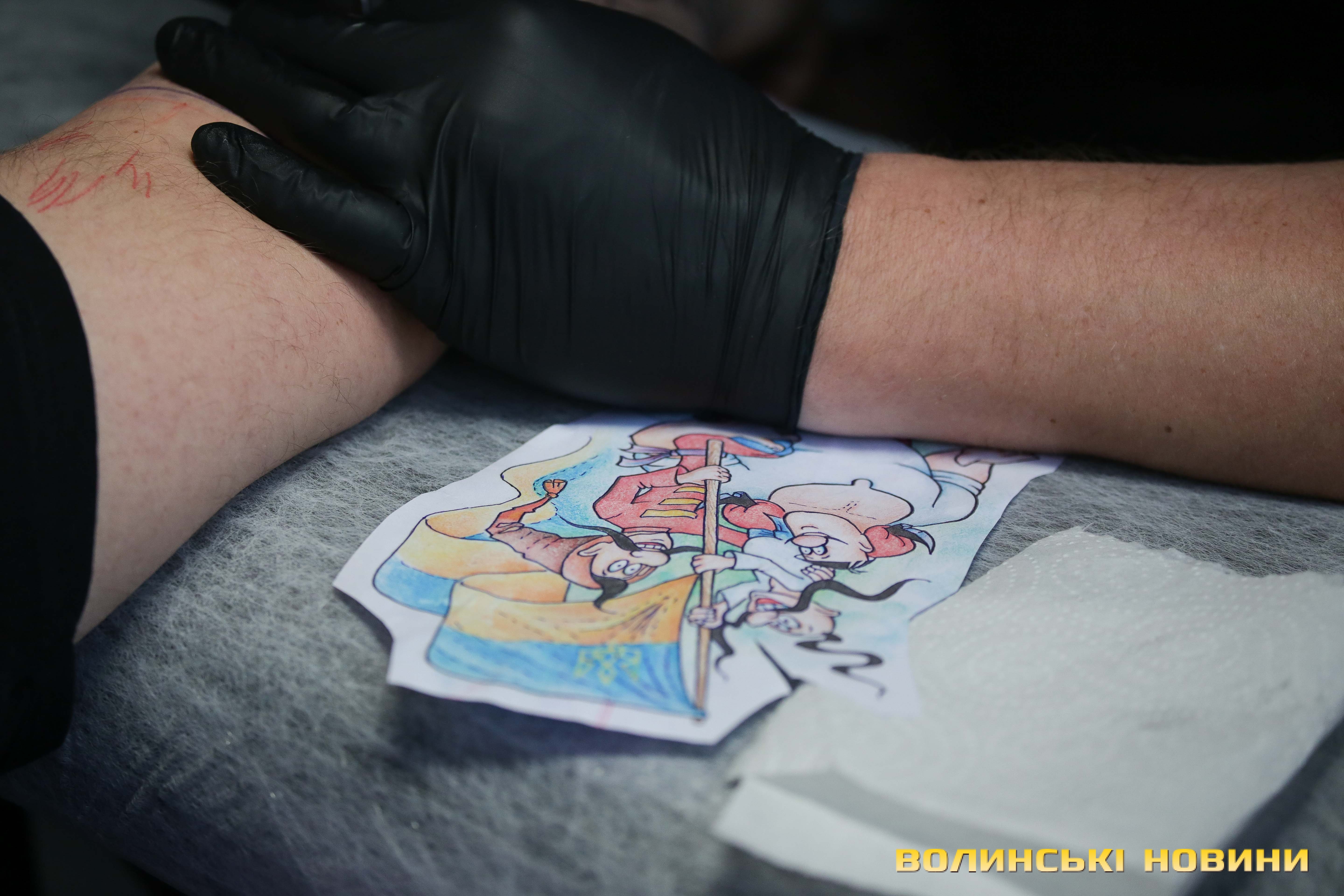 Що пізніше – то краще. Це навіть не 18 років. Становлення психологічної зрілості людини відбувається у кожного по-різному. В деяких людей і в 65 зрілості не знайдеш. А є такі, які в 12 років пережили таке, що інші не переживали. Наймолодша клієнтка у мене – чотирнадцятирічна дівчинка. Це була моя остання робота в Рубіжному, ми доробляли рукав. Вона прийшла до мене після мінометних обстрілів. А хлопець її був у Чехії. Він читав про прильоти, а вона простує вулицею і стрімить, що йде на татуювання. Їй доробили, а хлопцю – ні. Зараз вони живуть у Києві і приїжджали до Луцька, аби я завершив роботу.