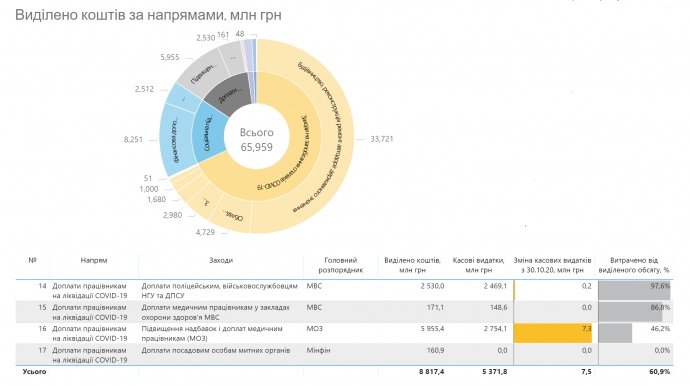 З так званого «коронавірусного» фонду на доплати силовикам і медикам уряд витратив майже однакові суми коштів.
