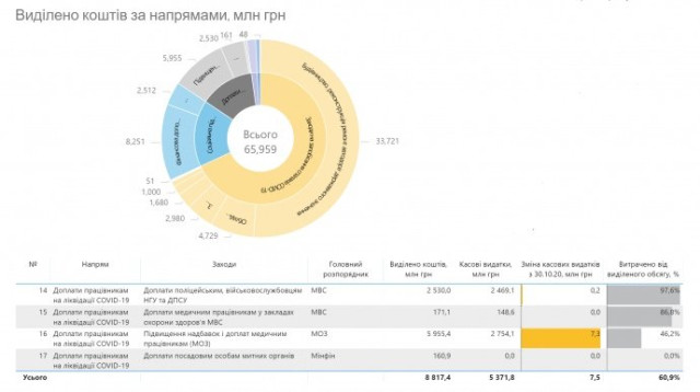 На доплати силовикам і медикам з COVID-фонду витратили майже однакові суми