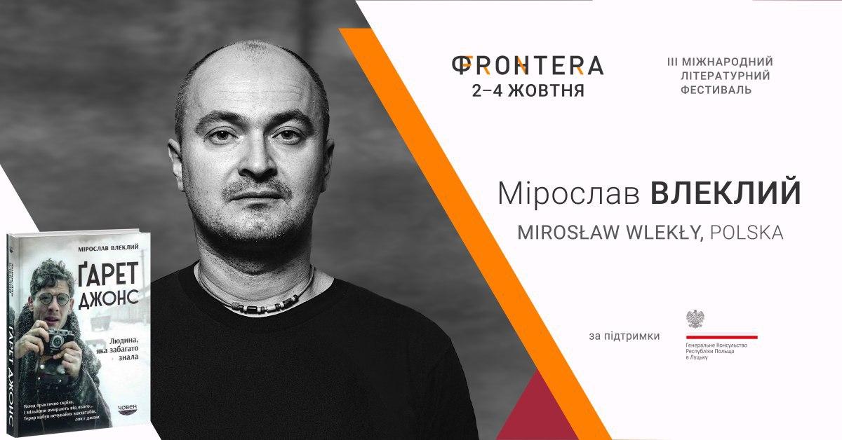 «Цьогоріч Україну і, без сумніву, Європу сколихнула історія британського репортера Ґарета Джонса, який першим розповів західному світу про Голодомор. Драматична біографія журналіста була розказана в книзі «Ґарет Джонс. Людина, яка забагато знала» польського письменника Мірослава Влеклого. І для нашої команди важливо й ціннісно є те, що під час «Фронтери» можна буде поспілкуватися з автором в Луцьку, а також придбати книгу в українському перекладі Олени Шеремет», – розповідає директорка фестивалю Елла Яцута.Безумовна зірка сучасної польської літератури Яцек Денель вже три років поспіль отримував запрошення відвідати «Фронтеру». І у 2020-му задумане здійснилося. «Вундеркінд нової польської літератури» (за версією журналу «Нова Польща» візьме участь у фестивалі та спільно з письменником Андрієм Любкою подискутує про світ сучасної польської літератури та, звісно, свої романи, перекладені українською («Ляля», «Кривоклят», «Сатурн» та «Матінка Макрина»).