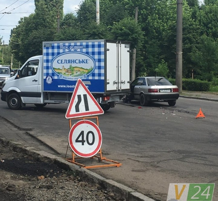 Зіткнулись автомобілі Audi та вантажний бус Mercedes. Через ДТП на вулиці Глушець – ускладнений рух.