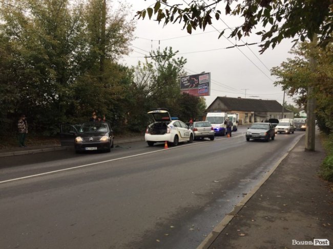 На вулиці Гнідавській у Луцьку сталась подвійна ДТП: зіткнулись два Volkswagen та Citroën.