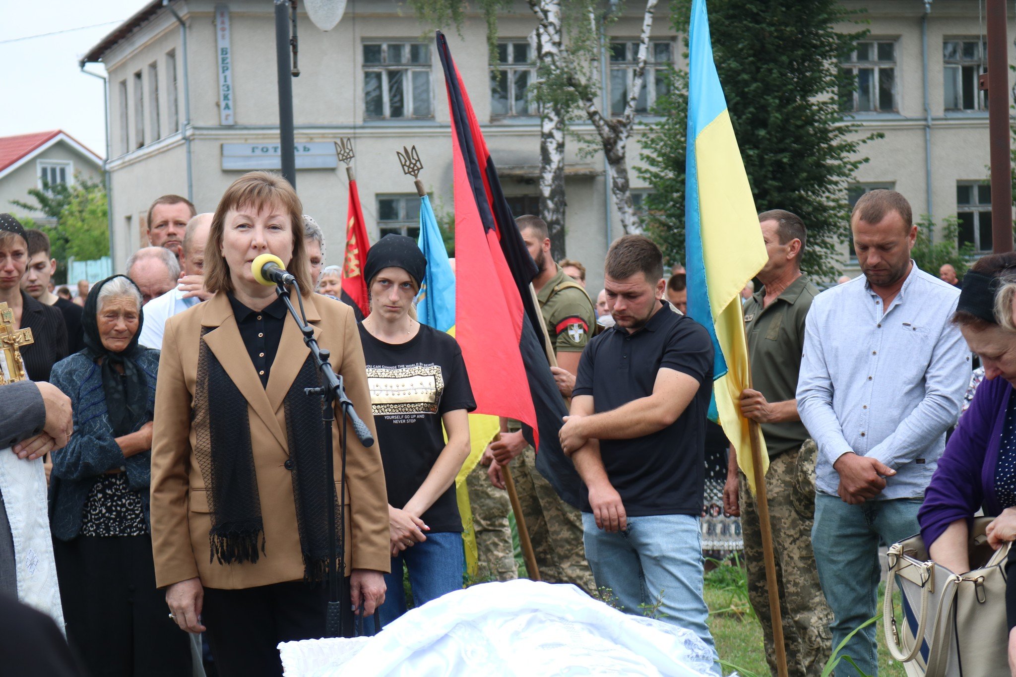 Аби віддати останню шану й сказати останнє спасибі захиснику за його мужність і жертовність, зійшлися рідні, друзі, небайдужі жителі громади та військові побратими.