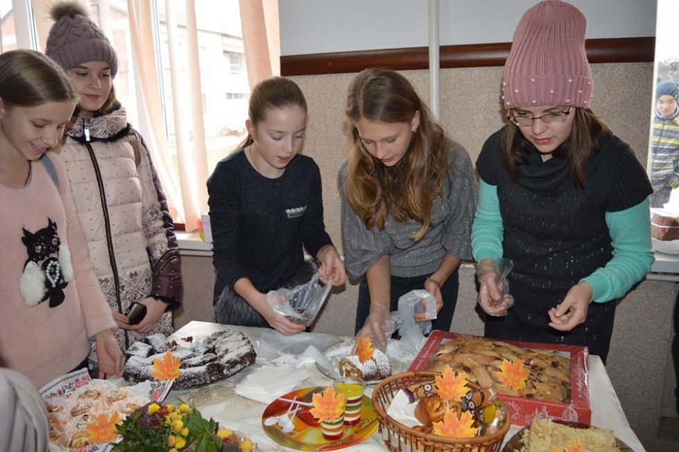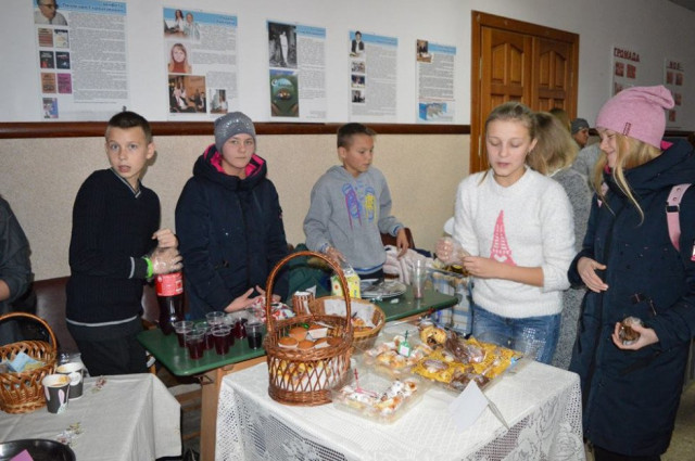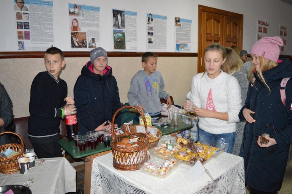 Дуже приємно було бачити у залі кожного, хто вирішив відкласти свої справи і турботи і прийти підтримати Сашка. Учні разом з батьками старанно готувалися до ярмарку. Маленькі продавці пропонували різноманітну смачну домашню випічку. Вразила велика кількість відвідувачів які, не шкодуючи коштів, розкупили всі смаколики.
