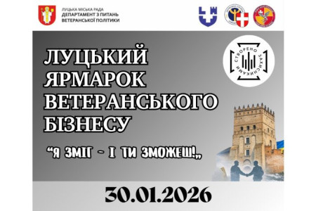 Жителів Луцької громади та гостей міста запрошують на ярмарок ветеранського бізнесу, який відбудеться 30 січня з 10 до 17 години у Луцькому національному технічному університеті (вул. Львівська,75).