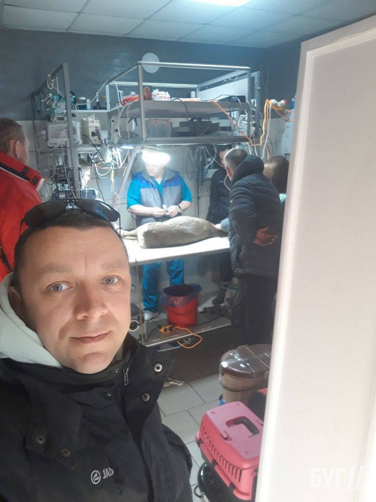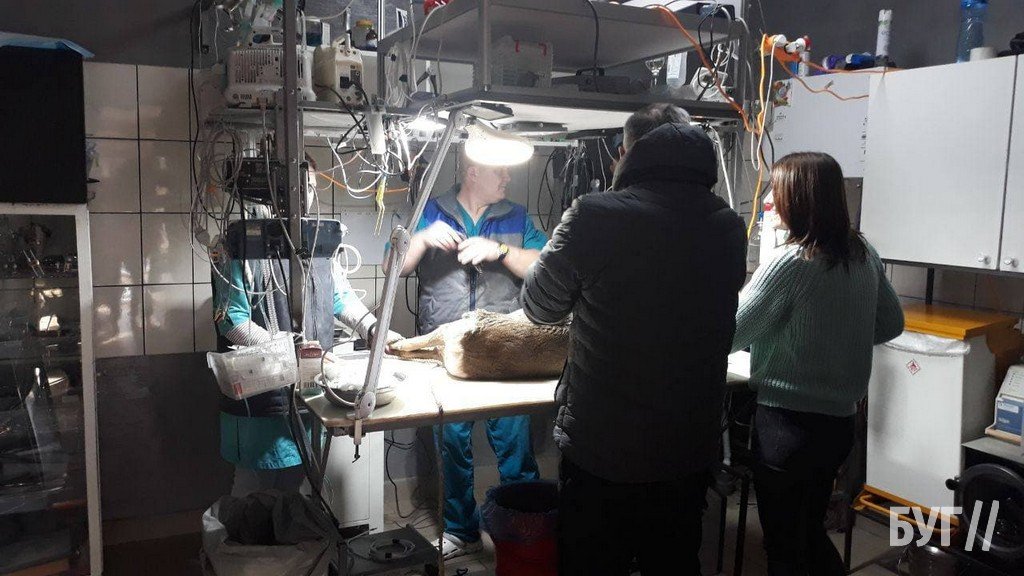 Мешканці Іваничів власним транспортом доставили тварину до приватного ветеринара у місто Володимир. Лікар провів операційне втручання і витягнув три дробини з мисливської рушниці зі стегна.