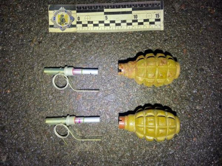 В автомобілі поліцейські виявили патрон калібру 5,45 мм та два предмети, зовні схожі на бойові гранати типу «Ф-1».