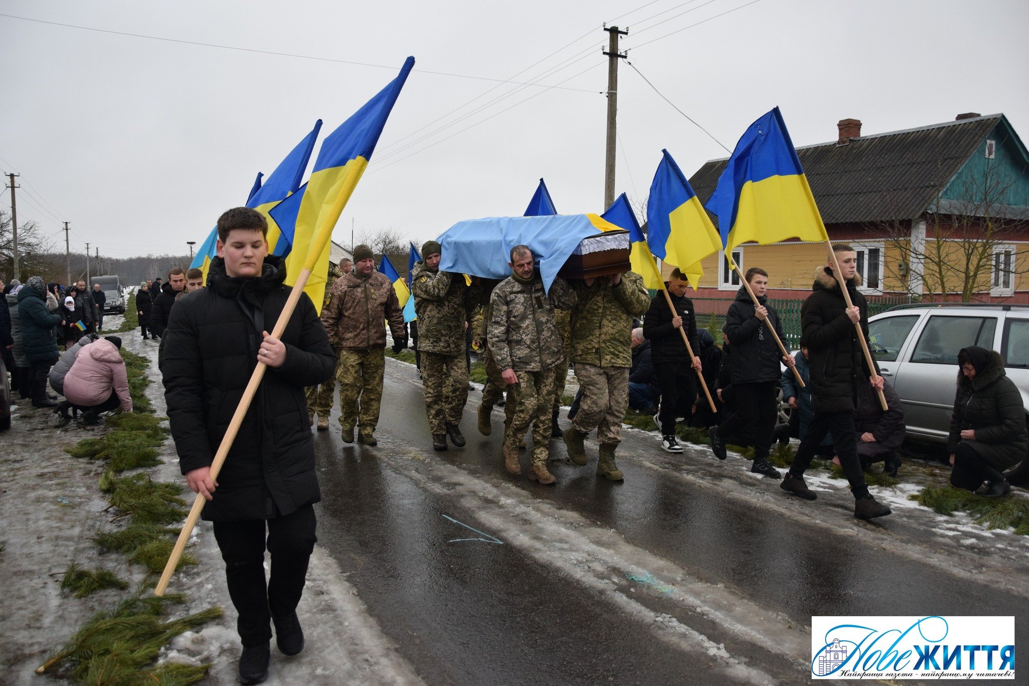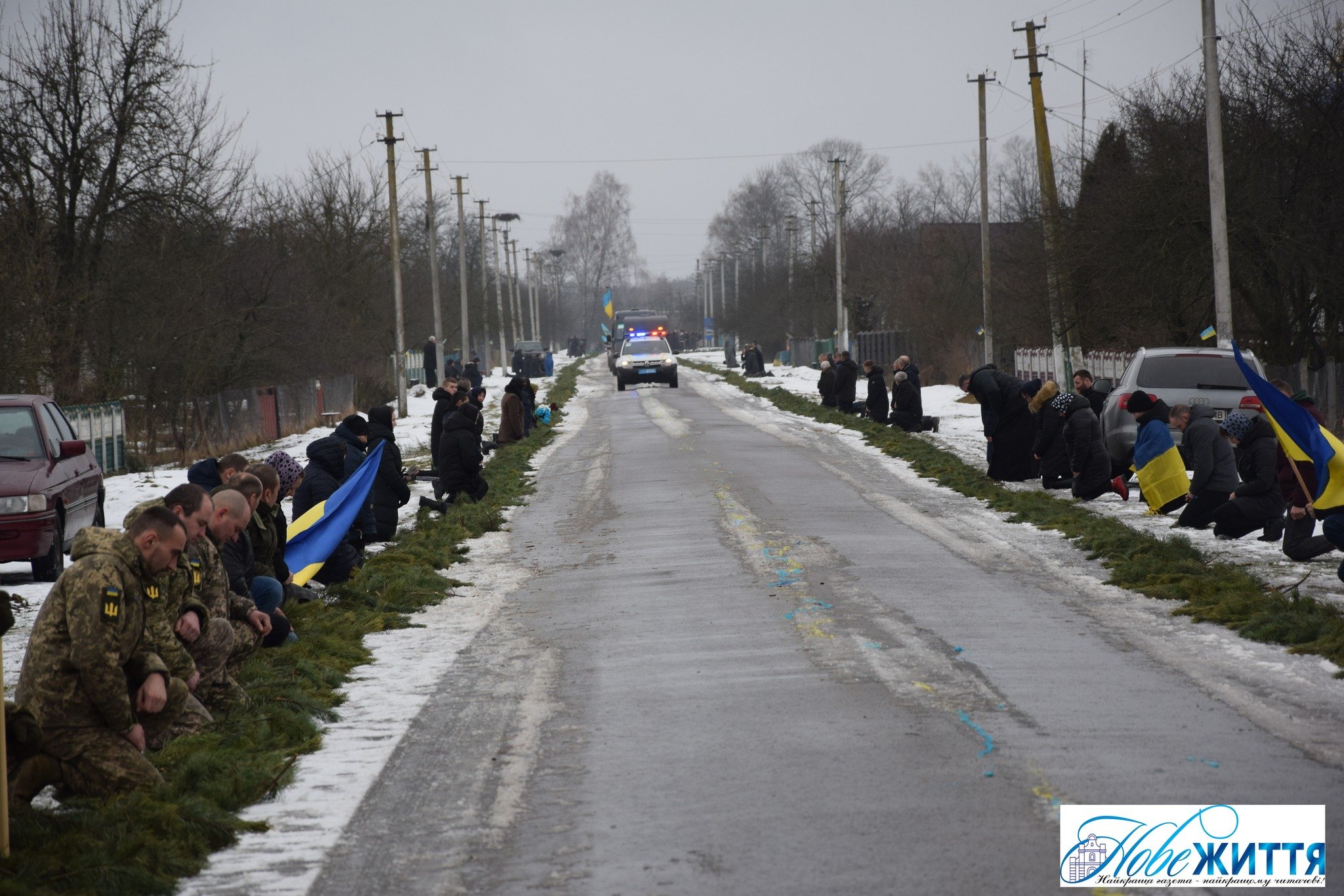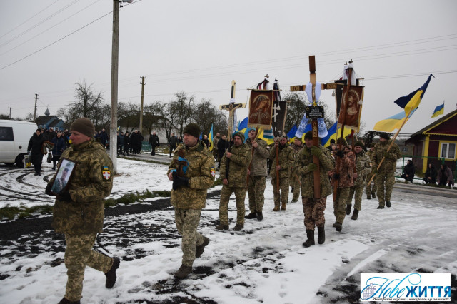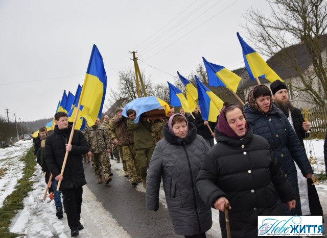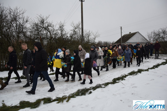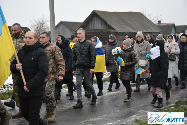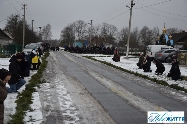 Попрощатися з загиблим прийшли рідні, побратими, односельчани. Жалобний кортеж проводжали навколішки, з квітами та прапорами.