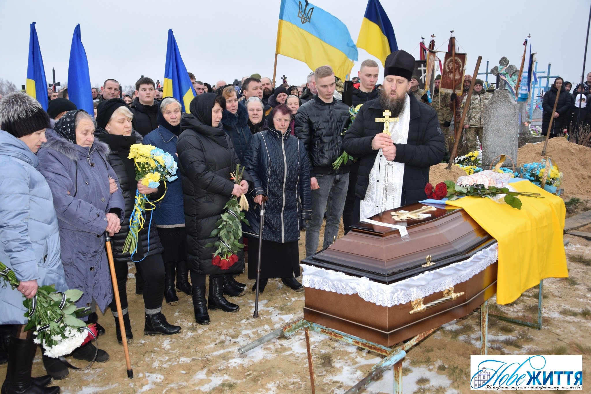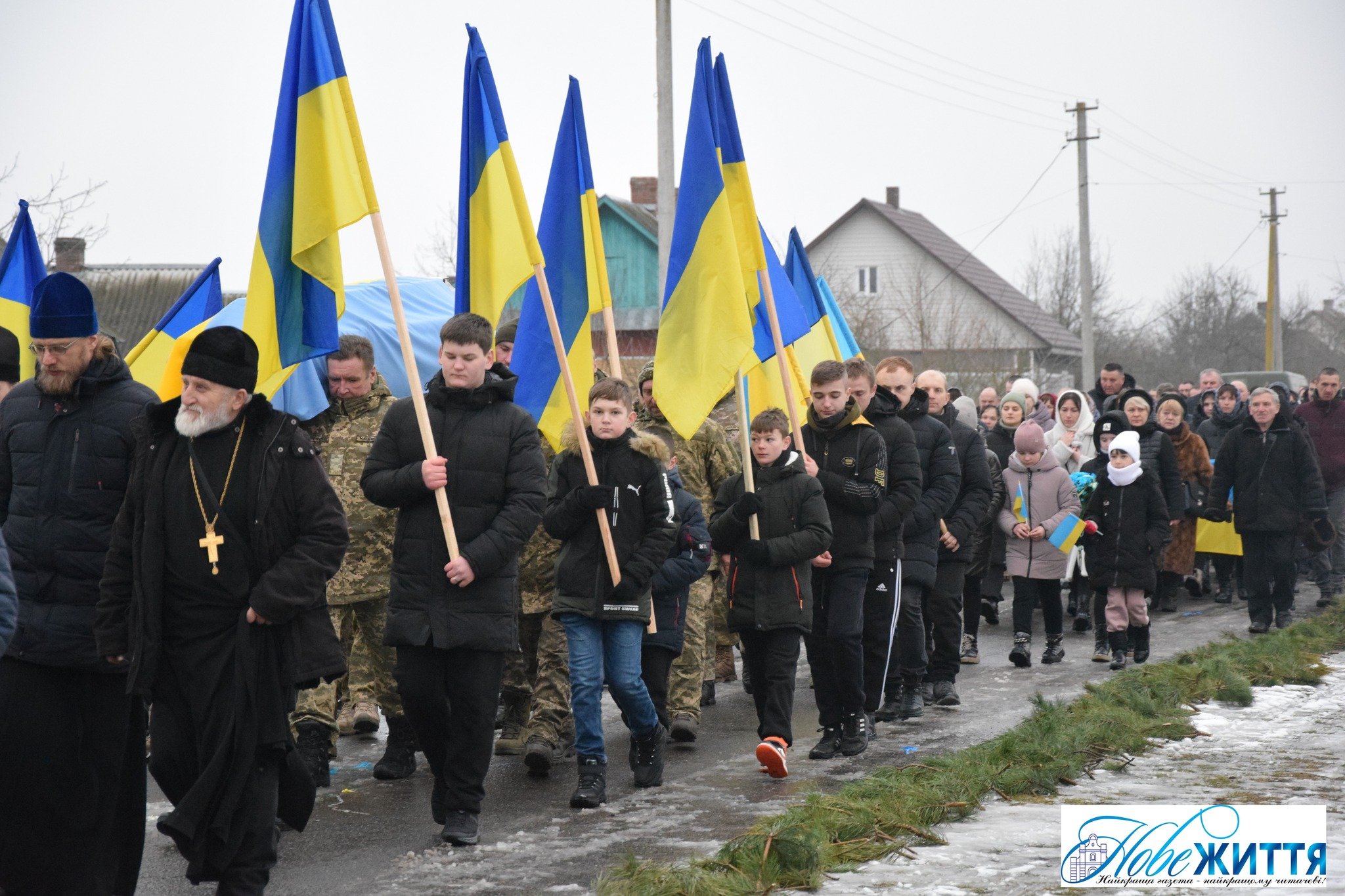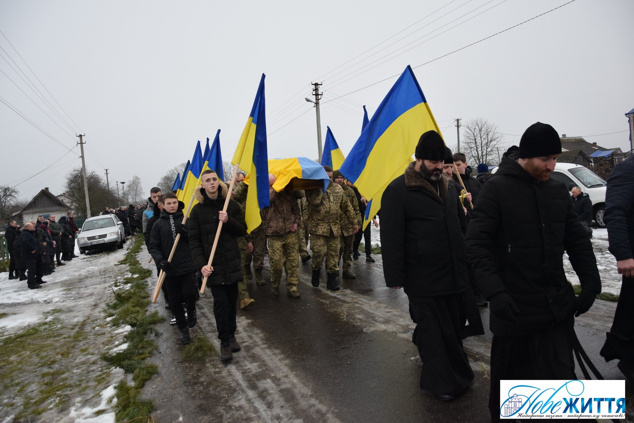 Попрощатися з загиблим прийшли рідні, побратими, односельчани. Жалобний кортеж проводжали навколішки, з квітами та прапорами.