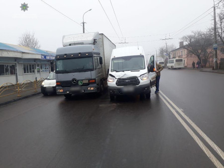 Сьогодні у Луцьку на вулиці Карпенка-Карого трапилась дорожньо-транспортна пригода: зіткнулись мікроавтобус та вантажівка.