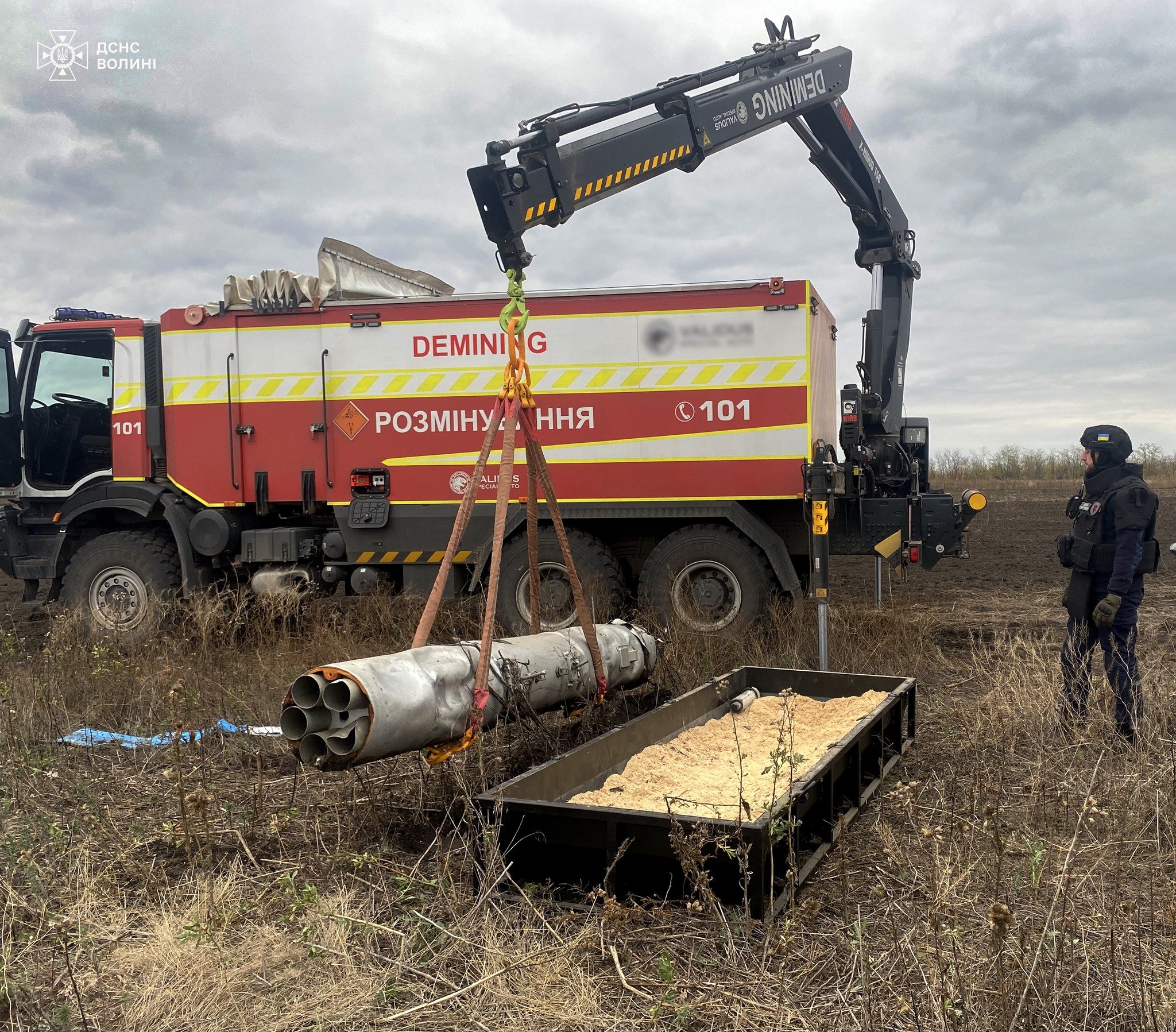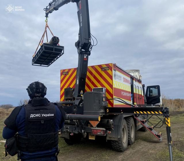 Після оцінки стану боєприпаса фахівці з'ясували, що його можливо транспортувати. За допомогою маніпулятора небезпечний предмет завантажили на піротехнічний автомобіль, транспортували на спеціальний майданчик і знищили.