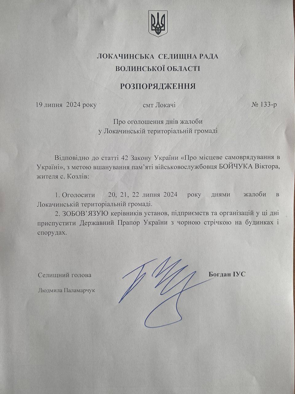 Відсьогодні за розпорядженням селищного голови в громаді оголошено триденну жалобу!