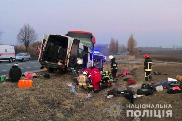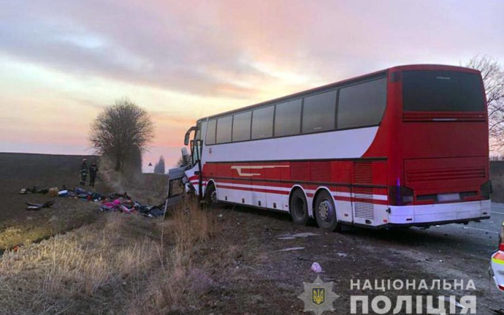 У результаті ДТП водій та шість пасажирів мікроавтобуса загинули на місці події. Ще 9 пасажирів транспортного засобу госпіталізовані до лікарні у Волочиськ. Наразі анкетні дані загиблих і потерпілих встановлюють. Водій та пасажир автобуса серйозно не постраждали.