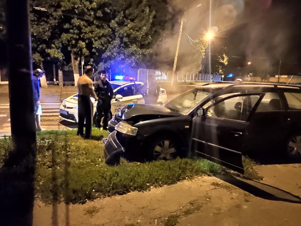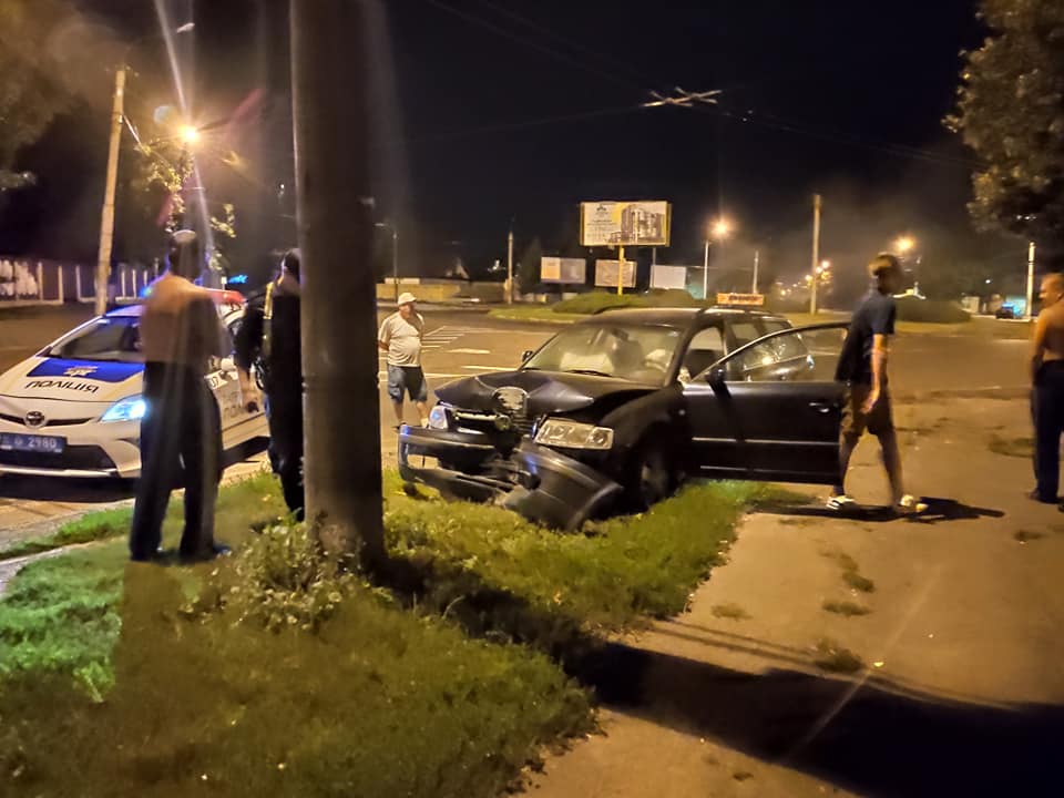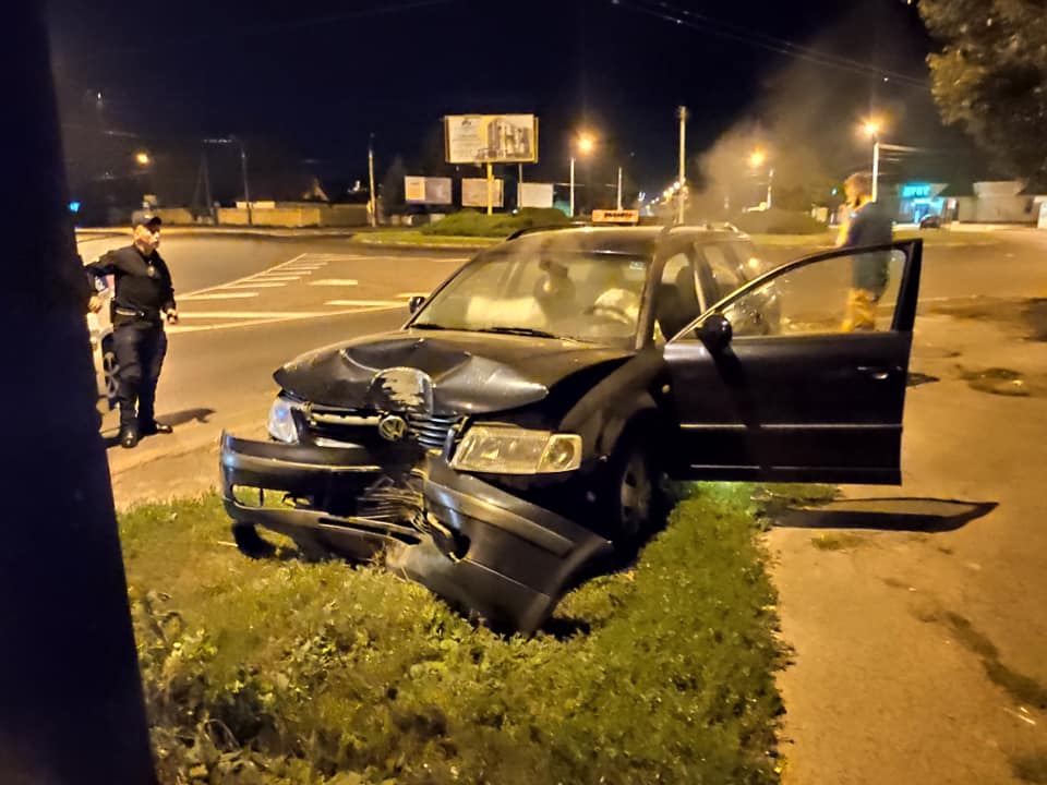 Водій Volkswagen вочевидь на високій швидкості не впорався з керуванням і на кільці врізався у стовп.