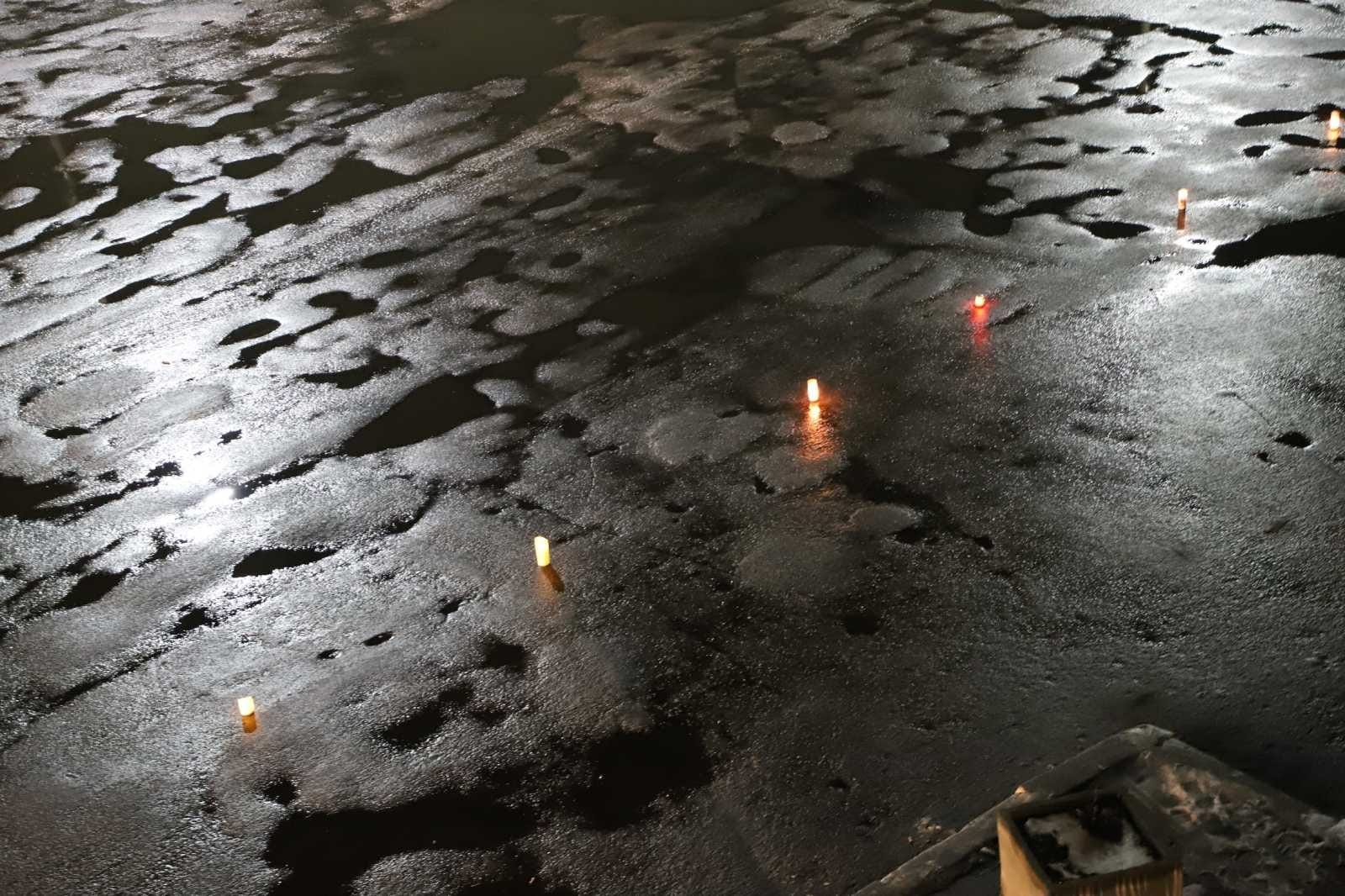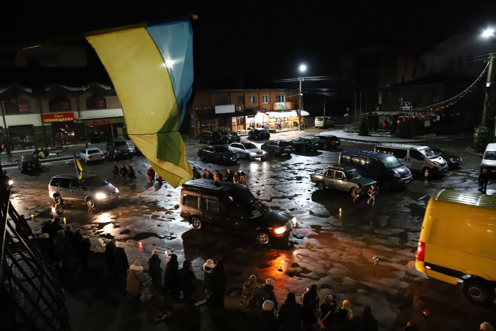 Жителі міста і сіл зі сльозами на очах, живим коридором Слави, на колінах, з національною символікою та викладеними лампадками обабіч дороги, зустріли скорботний кортеж із тілом воїна.