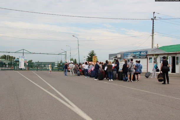 Люди сидять на своїх валізах або на траві, тому що ніяких лавок немає. Але більшість просто стоїть. При цьому такий ажіотаж на кордоні спостерігається вже другий тиждень поспіль.