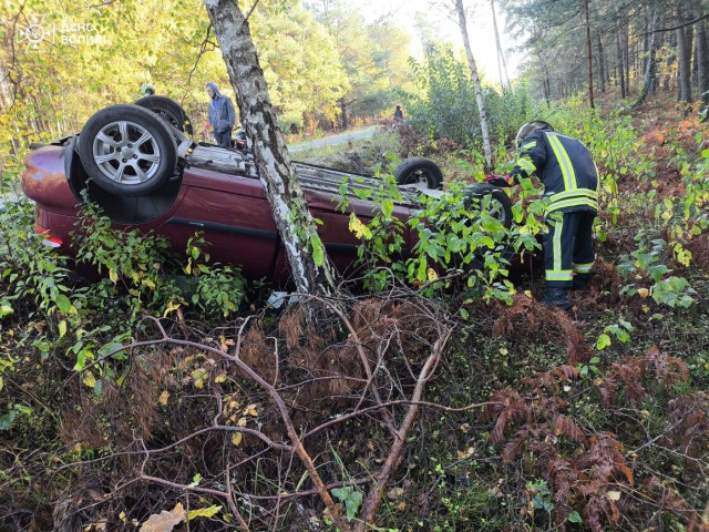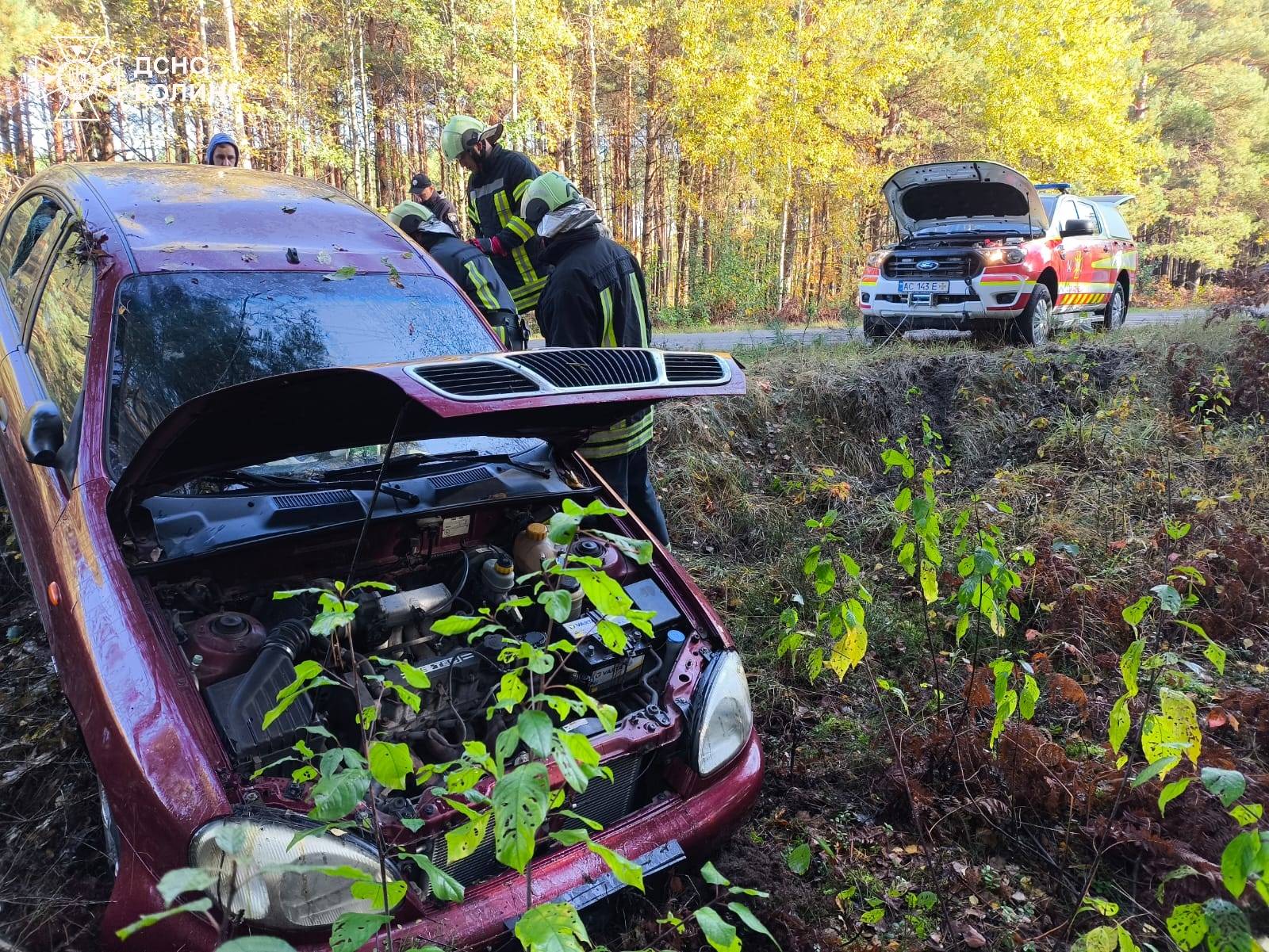 Повідомлення на лінію 101 надійшло о 10:11 12 жовтня. У кюветі біля села Заліси Заболоттівської громади легковий автомобіль перекинувся на дах. У транспортному засобі перебувала жінка, яку визволили очевидці й передали медикам.