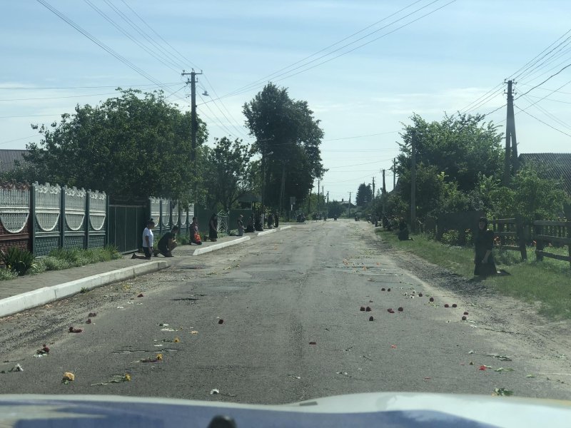 Устелений квітами шлях, схилені у скорботі голови – жителі населених пунктів, якими лягла дорога траурного кортежу, навколішки стрічали Героя.