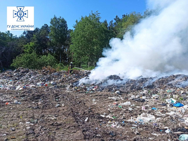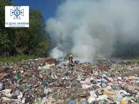 «Рятувальники 21-го державного пожежно-рятувального поста смт Голоби ввечері ліквідували пожежу сміттєзвалища в с. Вівчицьк Ковельського району та недопустили пожежі в лісі», - йдеться у повідомленні.