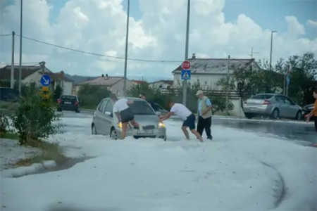 Попри спеку, яка панує у Європі, все ж природа знаходить можливості здивувати аномалією. Так, на курорті в Хорватії випав сніг і настільки потужний, що подекуди машини не могли самостійно виїхати із замету.