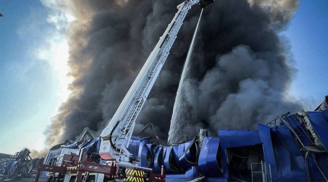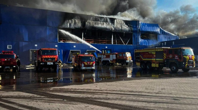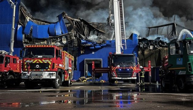 На Київщині рятувальники загасили пожежу на 17 тис. кв.м після влучання ворожого дрона в складські приміщення на території логістичного центру компанії «Епіцентр».