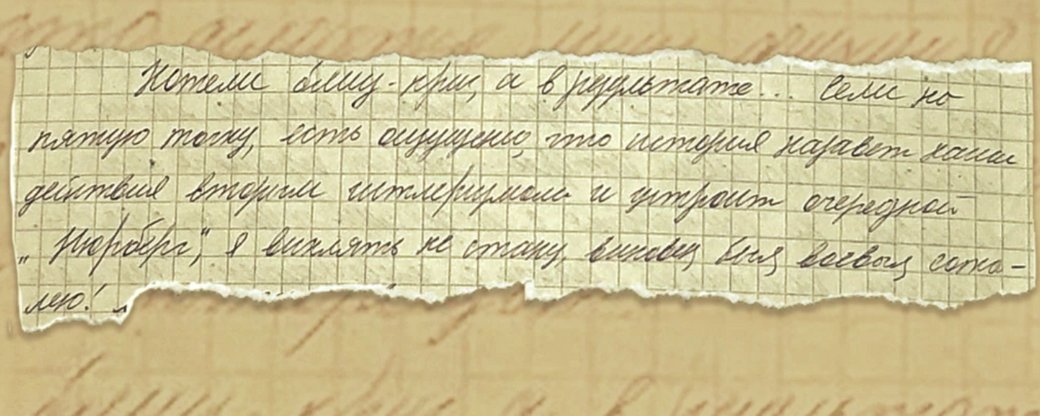 А вже через два дні він описує, як проводив допит «нацистів»: «Спільними зусиллями вашого покірного слуги та співробітника були допитані особи у складі 12 осіб, усі – нацисти. Я був безжальний, розпинав їх перехресними, індивідуальними та нічними допитами».