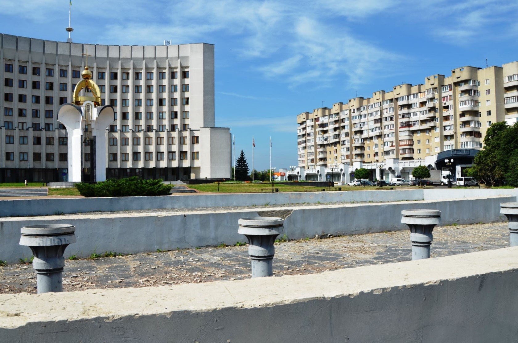 Партерний фонтан на Київському майдані пропрацював недовго у 90-х роках минулого століття. Але й досі стан фонтану дозволяє говорити про його відновлення, адже проєкт і саме оформлення водограю могли би стати не тільки привабливою, але і корисною локацією.