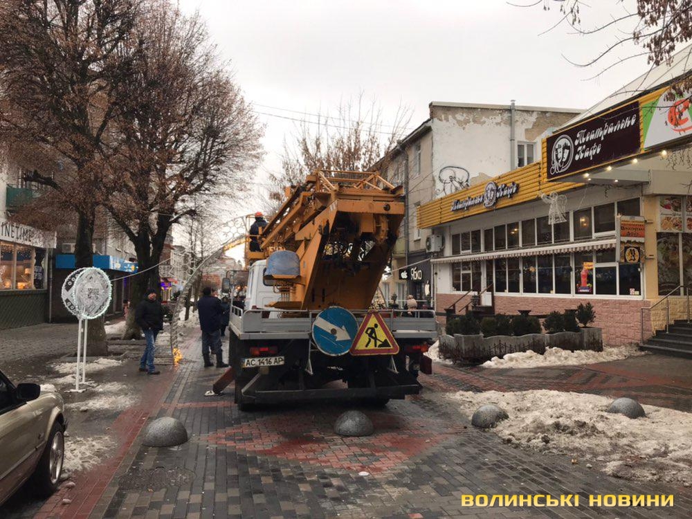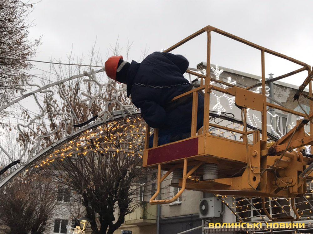 Працівники «Луцьксвітла» монтують новорічну ілюмінацію на центральній вулиці міста. На Лесі Українки вже з’явилися нові декорації – кола із зображеннями сніжинок, які прикрашатимуть вулицю, додаючи ще більшої атмосферності і святковості.