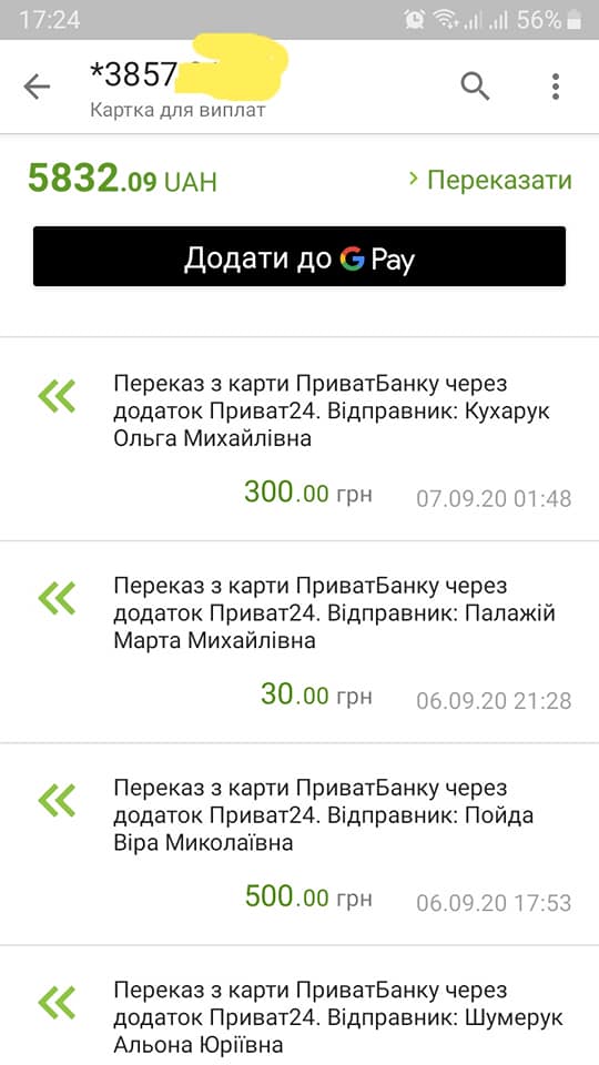 Номер картки – 5168 7573 9487 3857.Вікторія СЕМЕНЮК