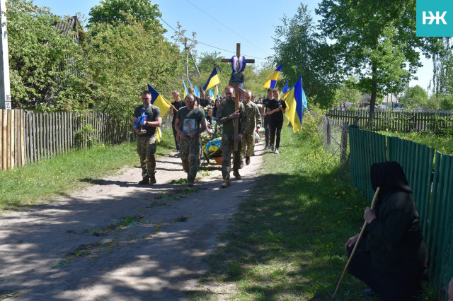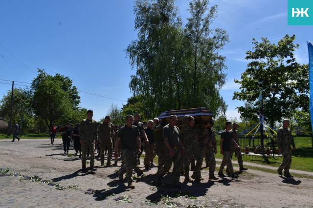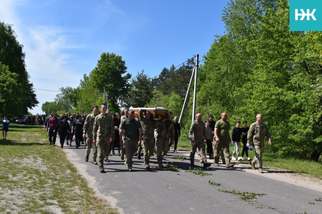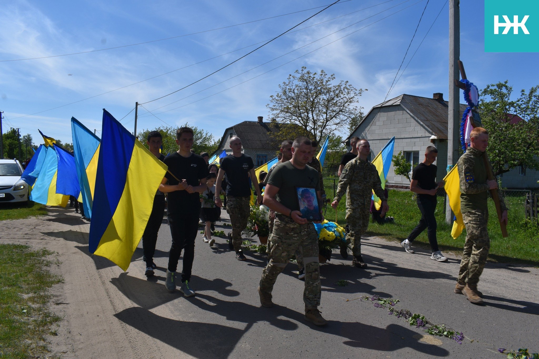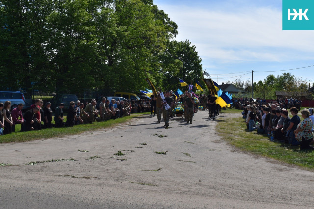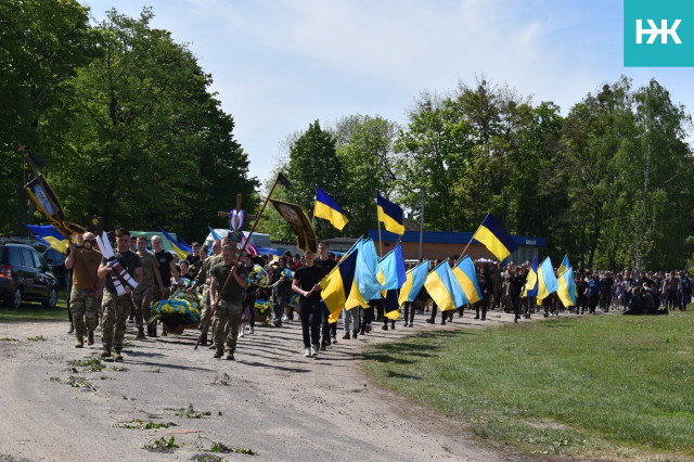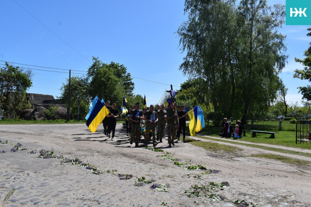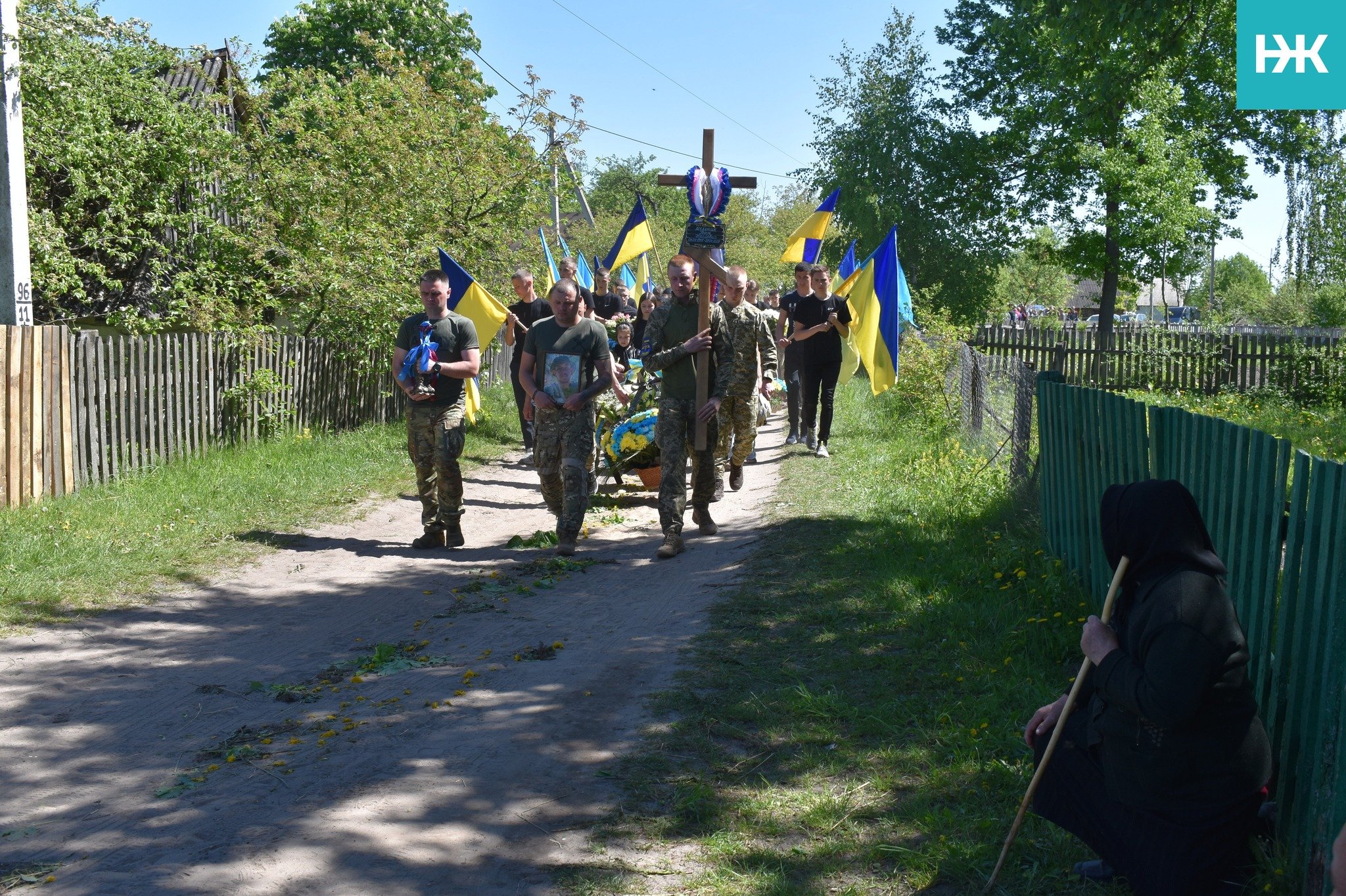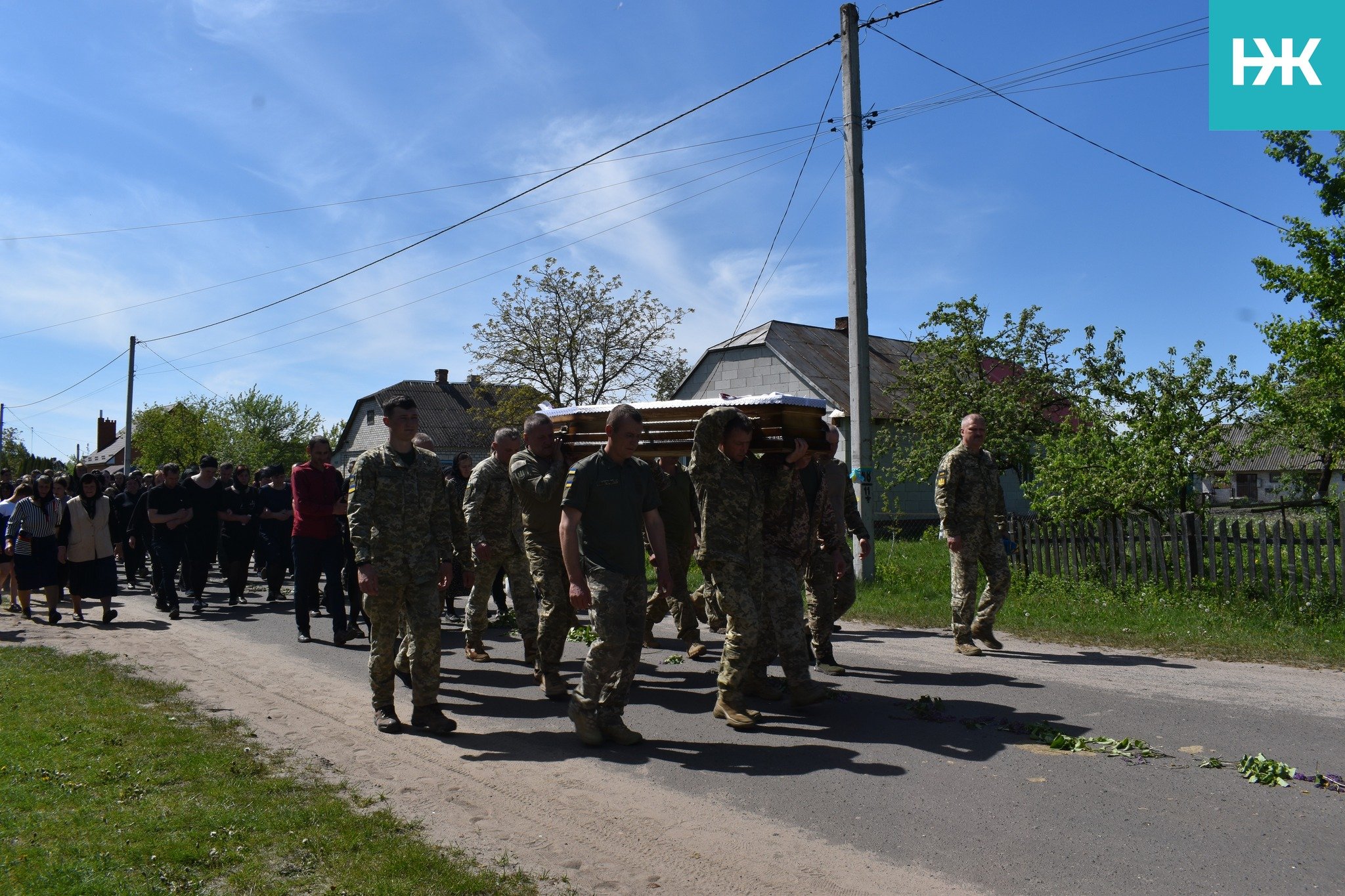 До місця останнього спочинку воїна супроводжувала велелюдна процесія, а його останній шлях встелили квітами.