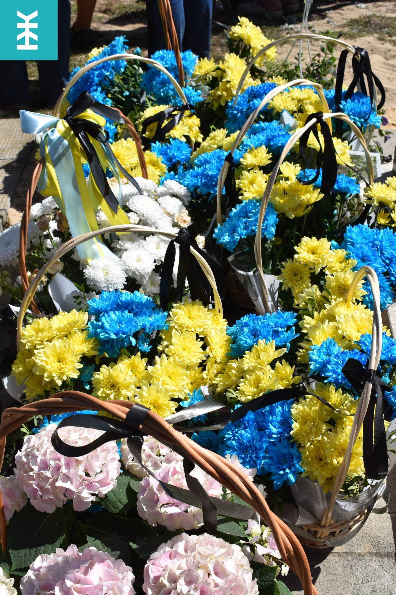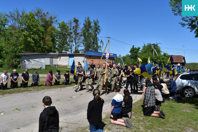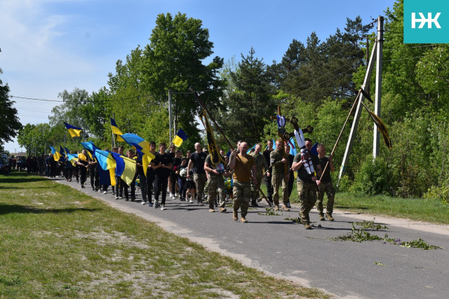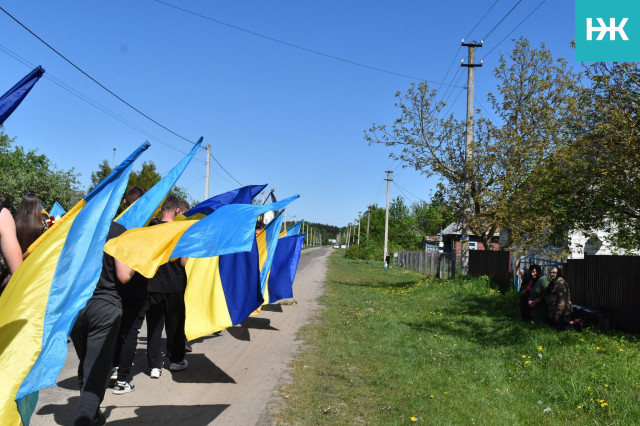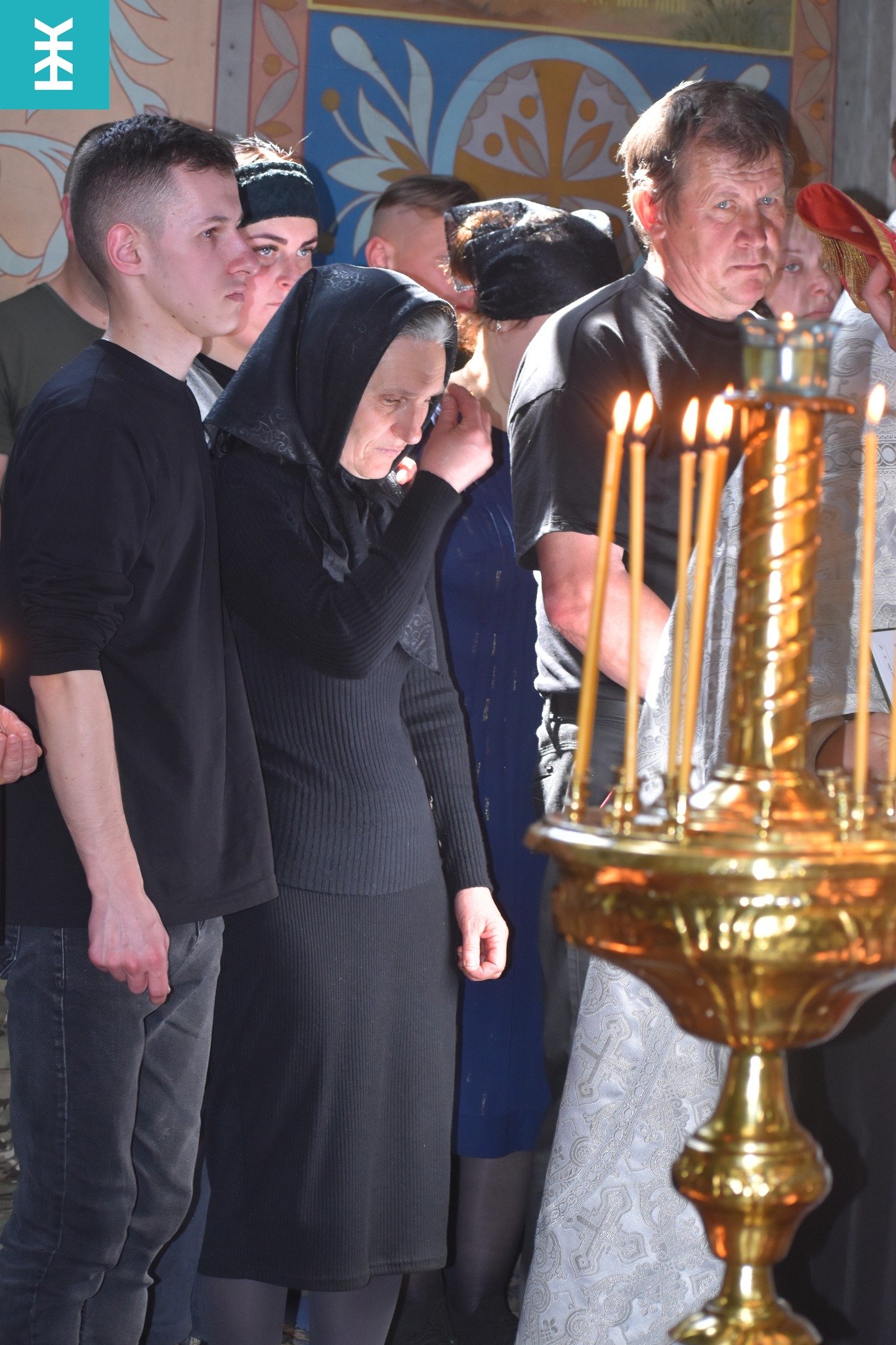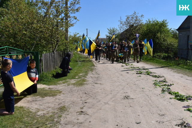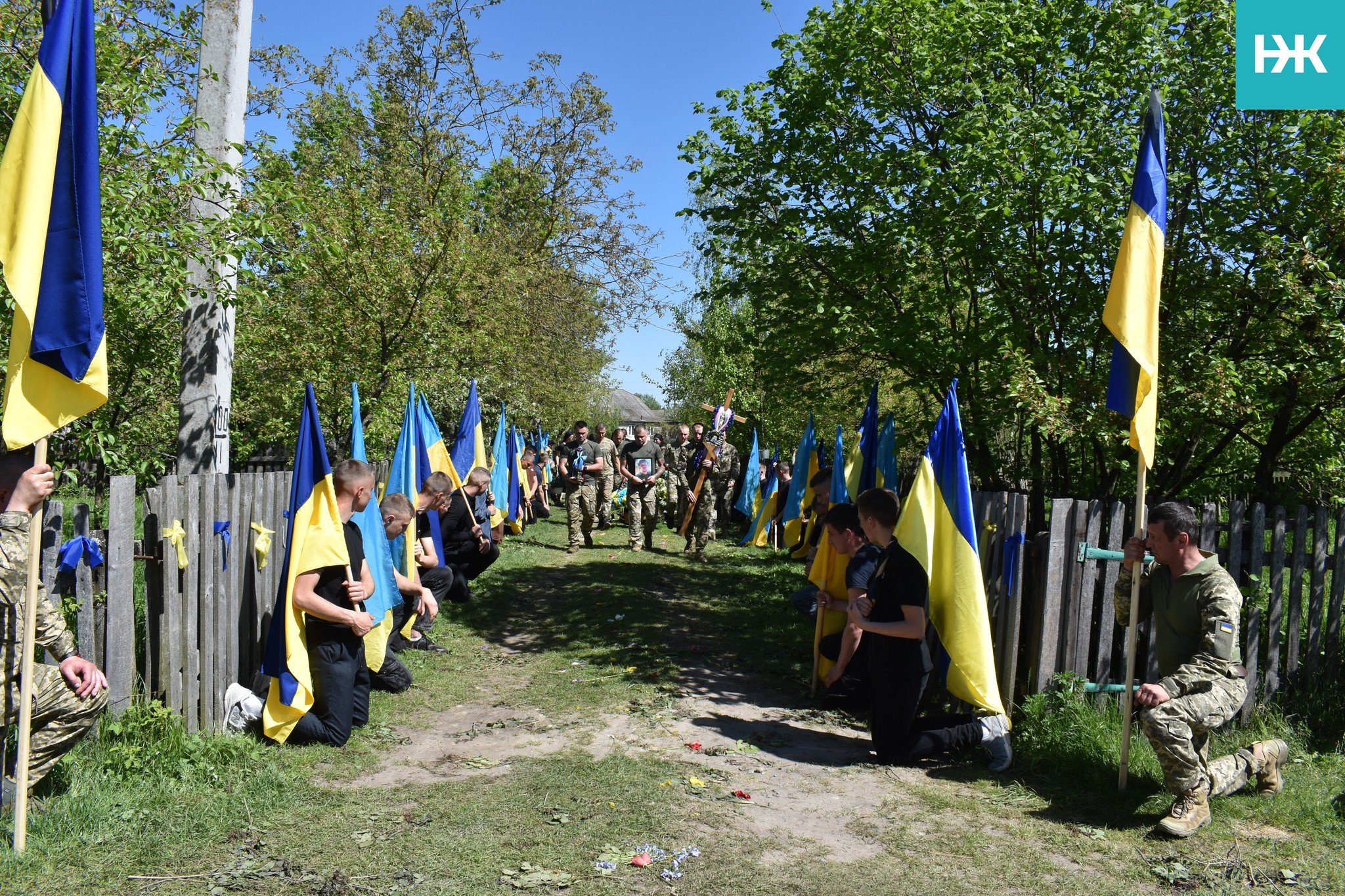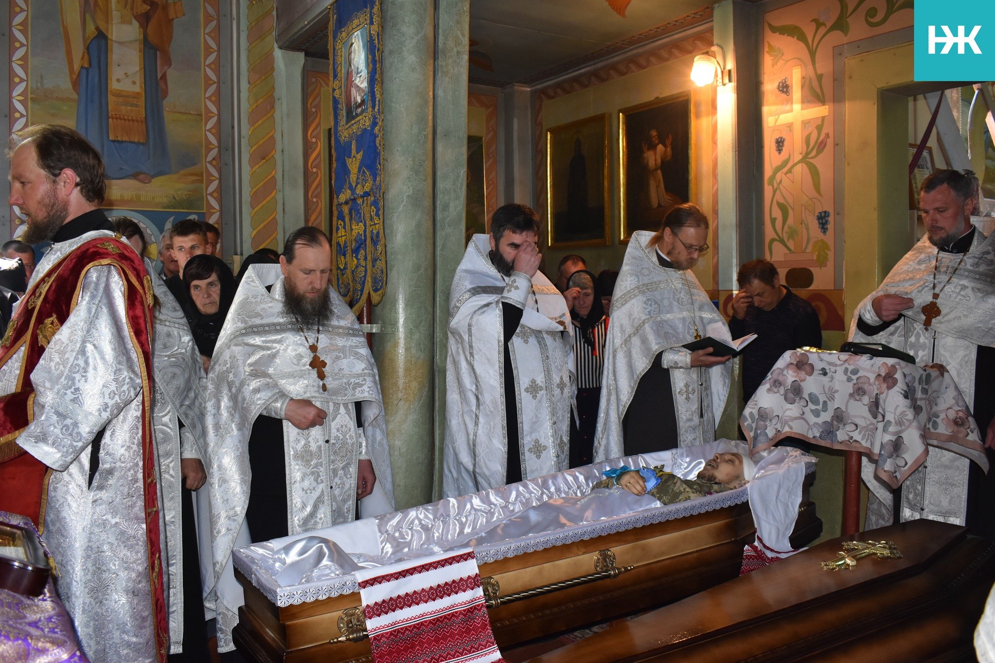 До місця останнього спочинку воїна супроводжувала велелюдна процесія, а його останній шлях встелили квітами.