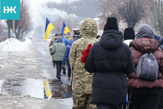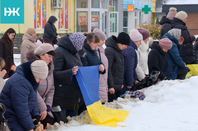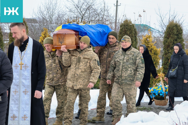 Земляки зустріли скорботний кортеж на колінах. Поховали воїна з усіма почестями на місцевому цвинтарі.