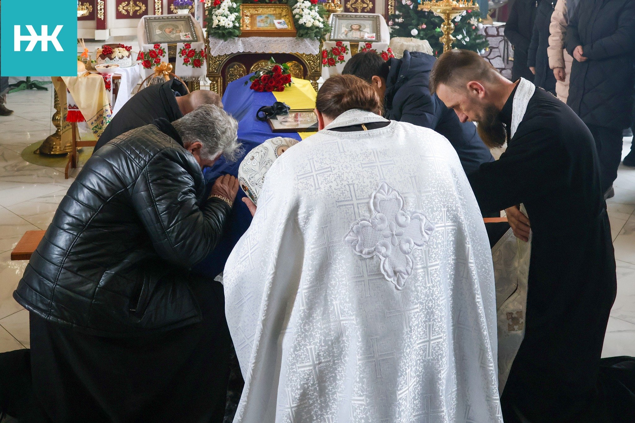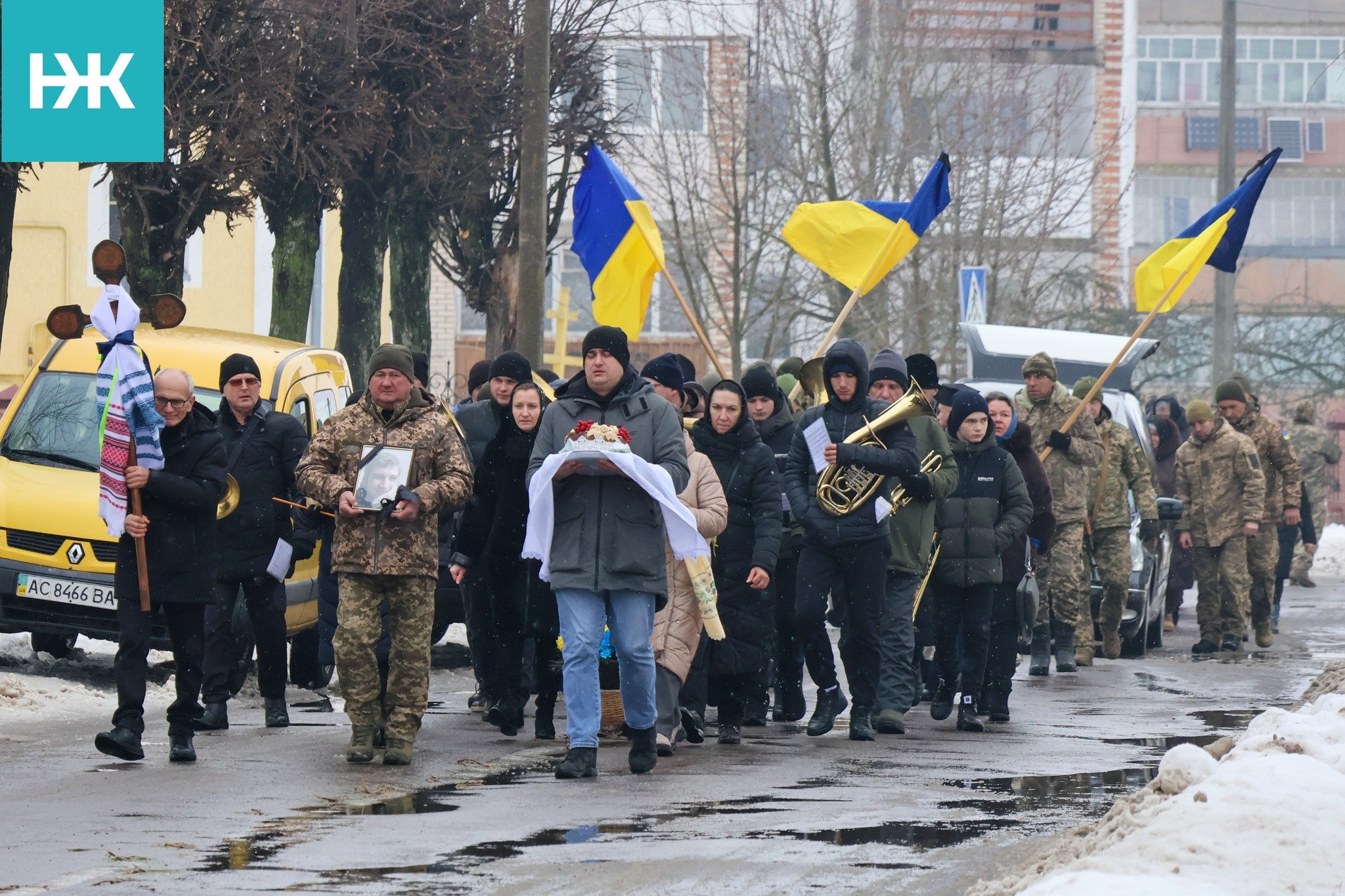 Земляки зустріли скорботний кортеж на колінах. Поховали воїна з усіма почестями на місцевому цвинтарі.