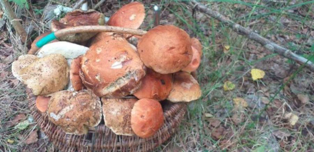 Софійка та Анна назбирали ще по кошику боровиків і красноголовців, але цей гриб став для них справжнім трофеєм.