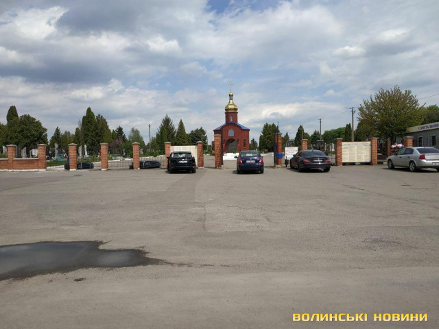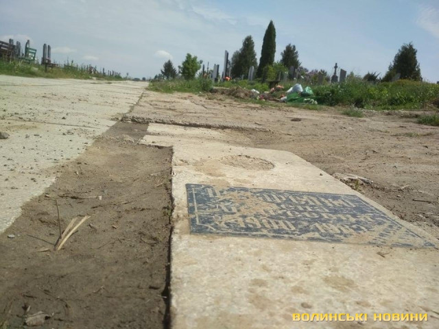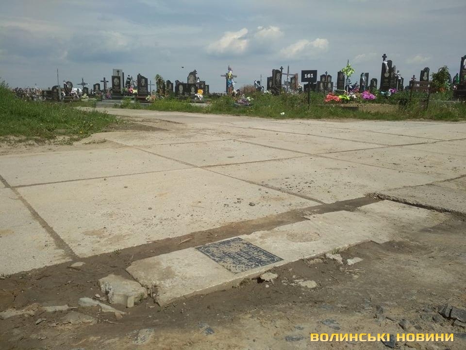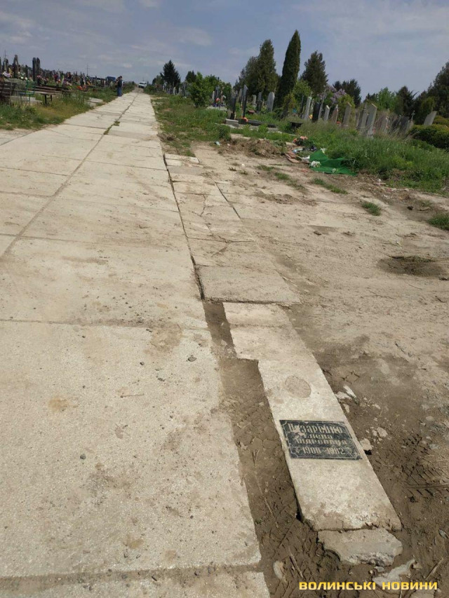 На луцькому кладовищі яму на дорозі «залатали» надгробною плитою. Фото
