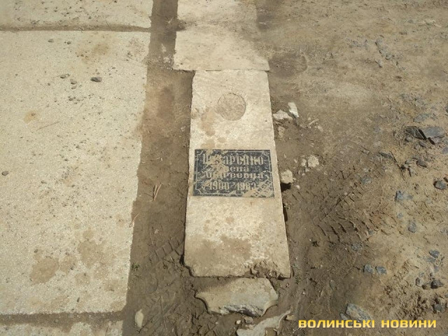 Невідомі заклали яму «непотрібною» надгробною плитою, з табличкою, де є ім’я та прізвище померлої людини, на кладовищі в селі Гаразджа.