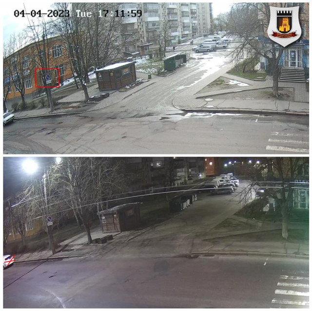 На проспекті Відродження у Луцьку з метою підвищення якості прибирання департаментом житлово-комунального господарства встановили дорожні знаки 3.35 «Стоянку заборонено» з табличками 7.4.4 «Час доби, протягом якого діє знак».