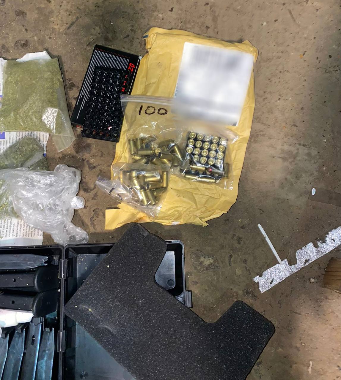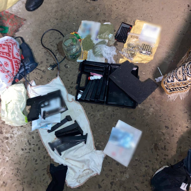 Вилучено: десятки набоїв калібру 9 мм виготовлені кустарним способом, магазини до зброї, пістолети з візуальними ознаками внесених конструктивних змін, інструкції до пістолетів, металеві тиски для внесення конструктивних змін, а також мобільні телефони, банківські картки та інші речові докази, що свідчать про його причетність до злочинної діяльності. Крім того, в квартирі знайдено канабіс та пристрої для куріння наркотичних речовин», - повідомив Юрій Крошко.