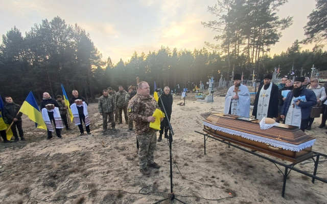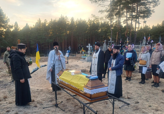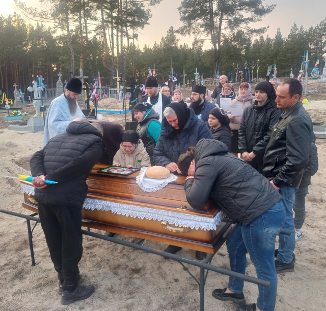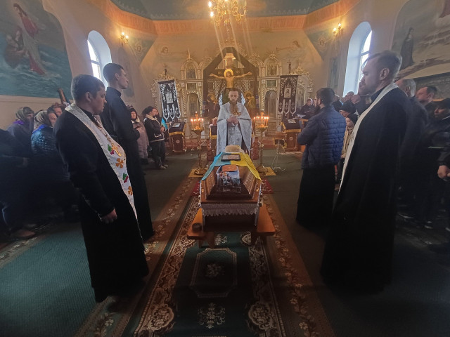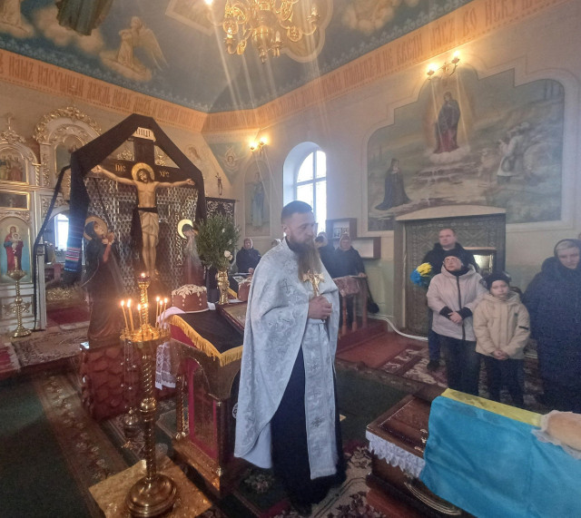 Панахиду за загиблим бійцем відслужили у Свято-Дмитрівському храмі. Поховали військовослужбовця з усіма почестями на кладовищі у рідному селі.