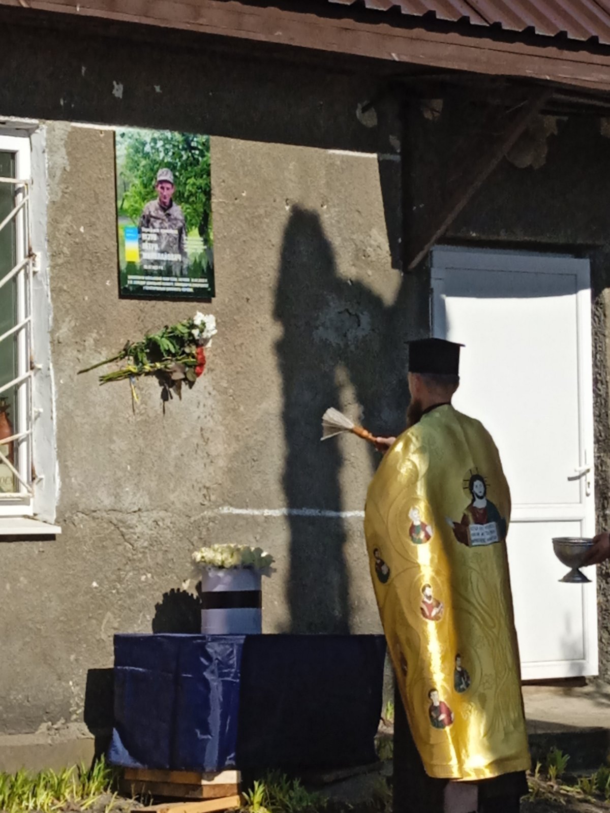 Чин освячення меморіальної дошки та поминальну молитву за упокій душ загиблих героїв здійснив отець Михайло із церковним хором храму Святих мучениць Віри, Надії, Любові та матері їх Софії.