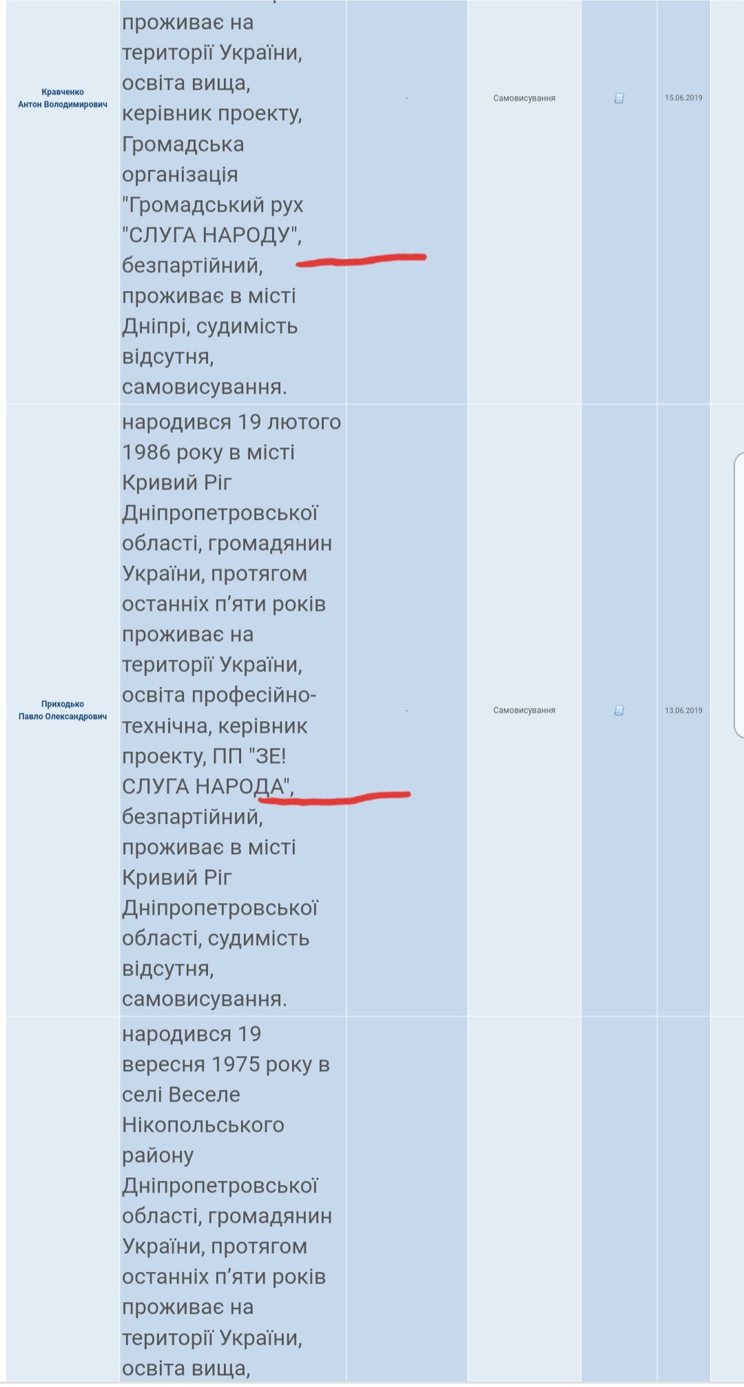 На сайті Центральної виборчої комісії з’явилися кандидати по мажоритарних округах, які числяться членами клонів президентської партії «Слуга народу».