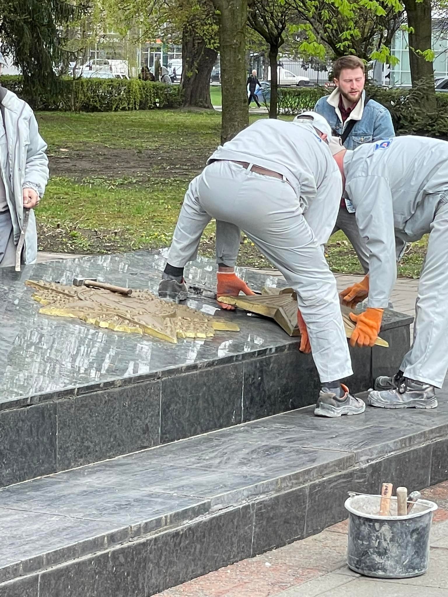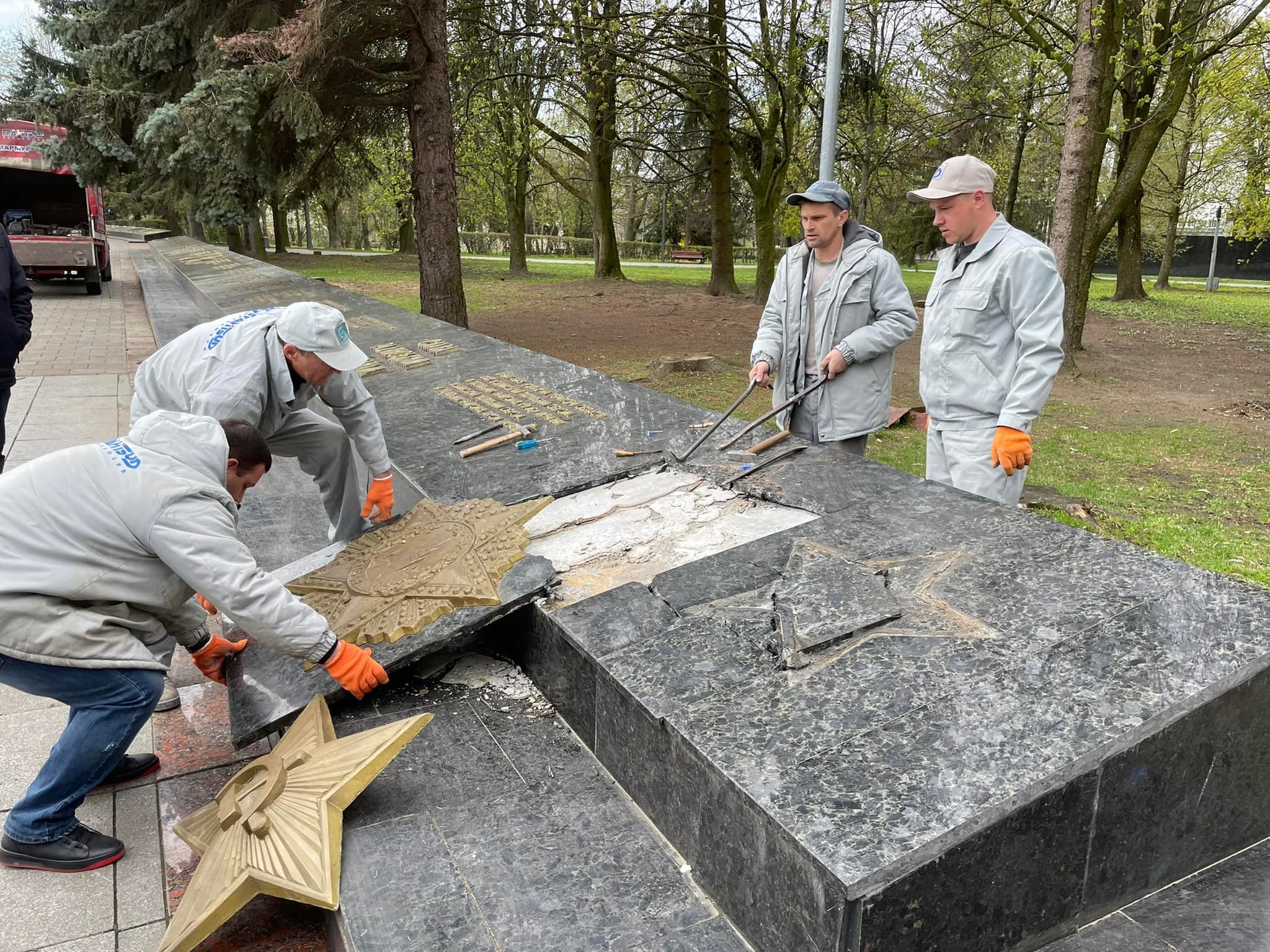 У Луцьку розпочали демонтаж радянської та україноненависницької символіки на Меморіалі вічної слави.