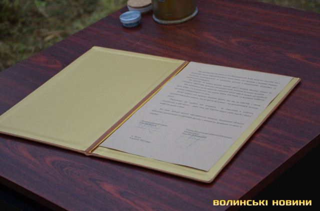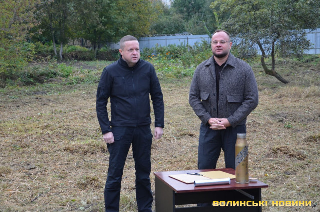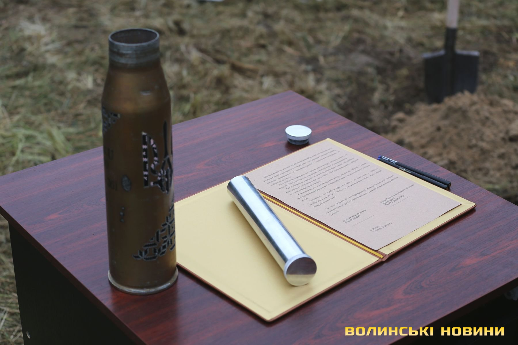 Капсулу із зображенням тризуба представникам влади передали військові. До символічного закладання, крім Ігоря Поліщука та Івана Рудницького, долучилися ветерани.