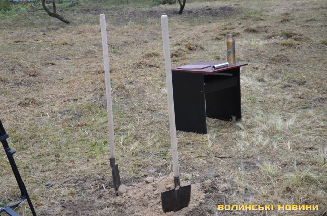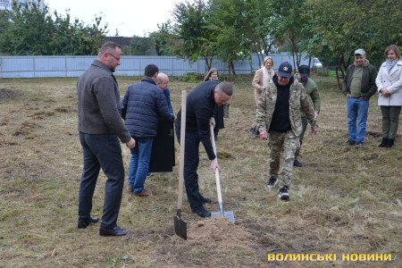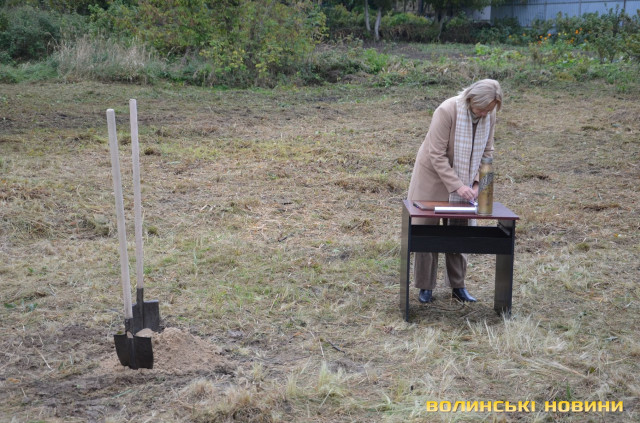 На місці будівництва нового ветеранського хабу в Луцьку закопали капсулу часу. Фото