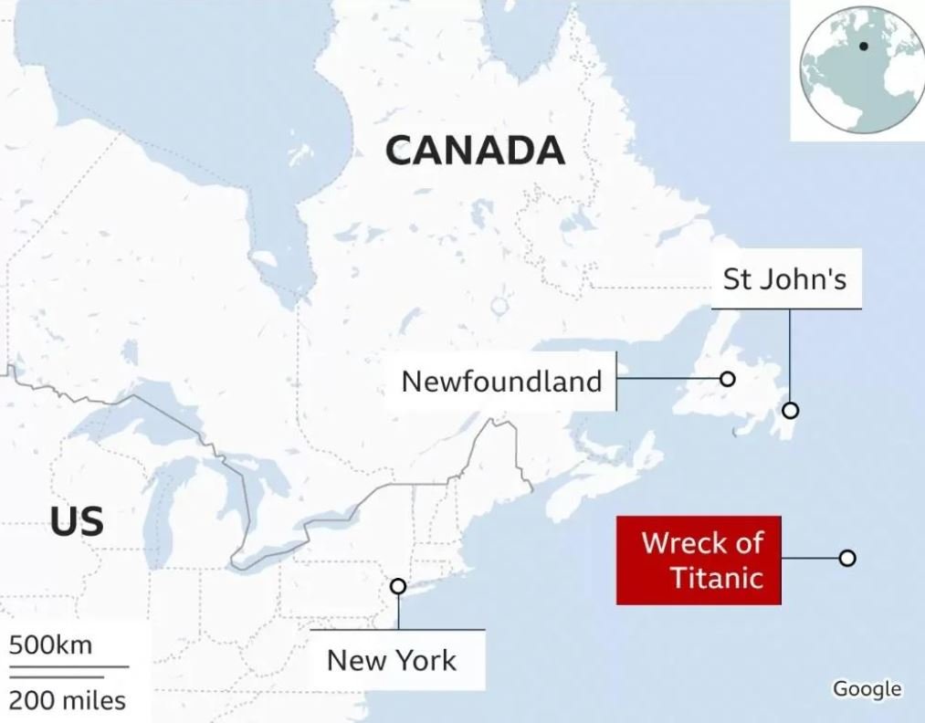 Уламки лайнера лежать на глибині близько 3800 метрів в Атлантичному океані приблизно в 600 км на схід від канадського острова Ньюфаундленд. Вперше їх змогли виявити тільки в 1985 році.