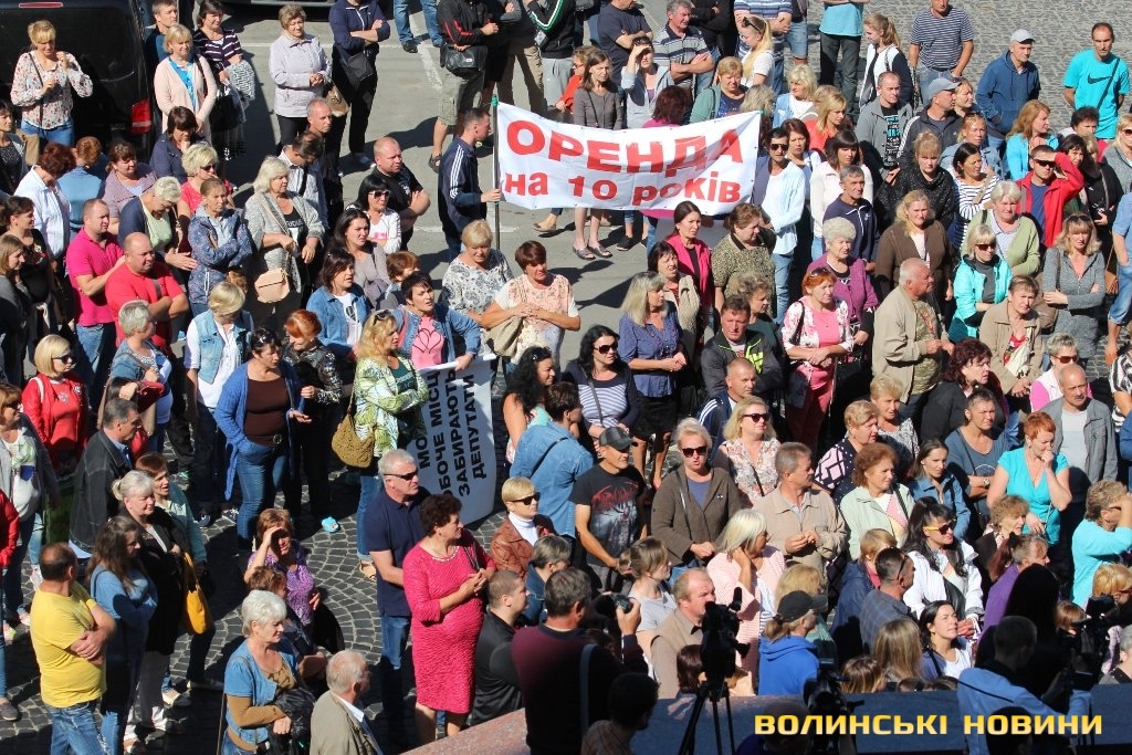 Пікетувати Луцьку міську раду прийшли не лише працівники Центрального ринку Луцька, а й підприємці з інших населених пунктів. Керівник облспоживспілки Володимир Горгут був у перших рядах мітингувальників та підбурював людей чинити тиск на депутатів, аби ті ухвалили вигідне йому рішення, давши договір оренди на 10 років.