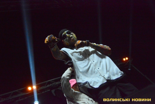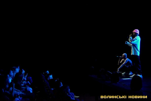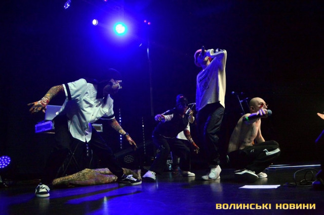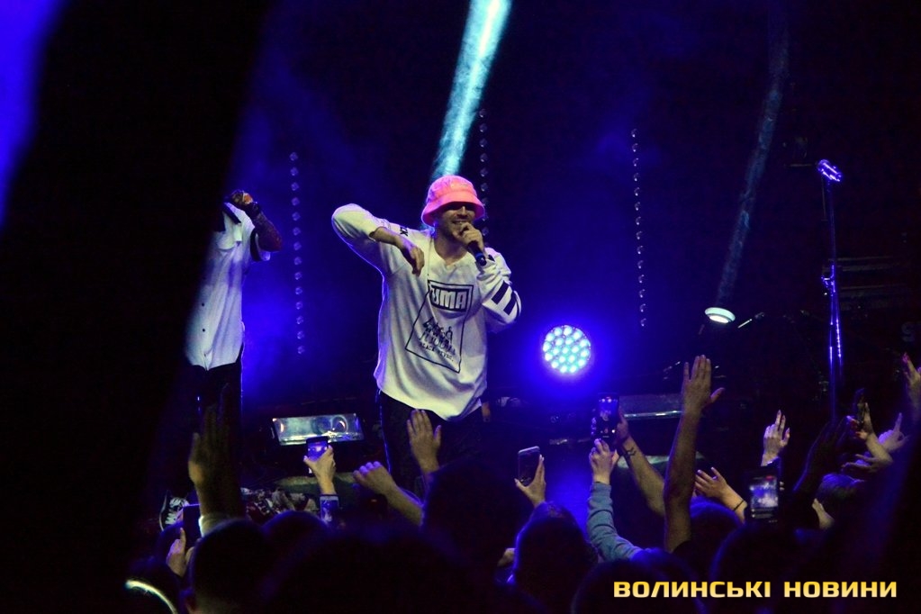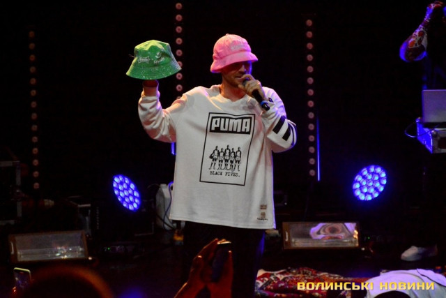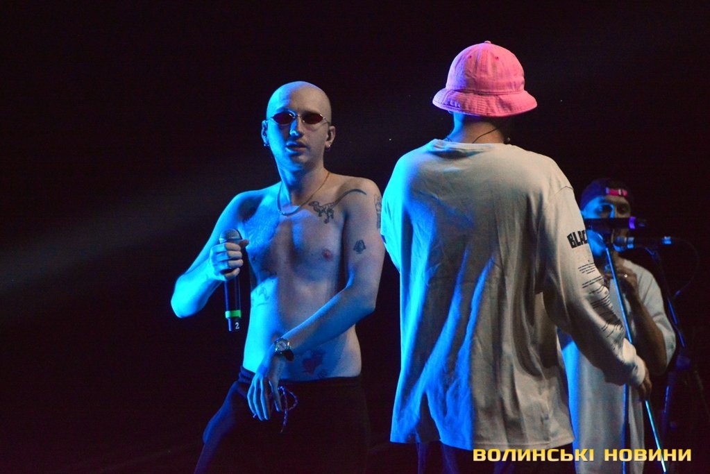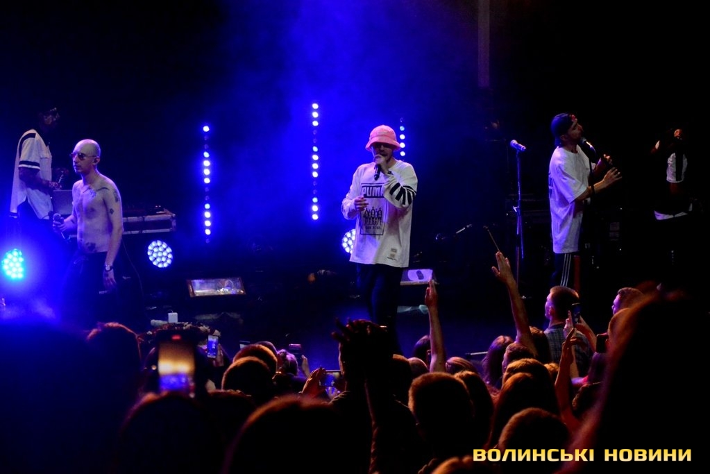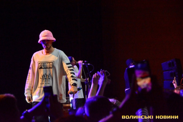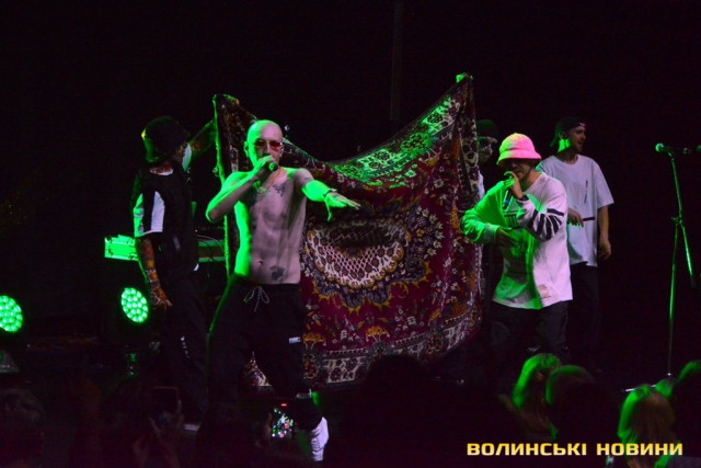 А далі на луцьку сцену в розважальному центрі «Промінь» увірвалися репери KALUSH, вони одразу ж закликали любителів репу встати зі свої місць та качати разом з ними. Відзначимо, що чимало фанатів хіп-хоп виконавців були у панамах, як і один з учасників гурту.