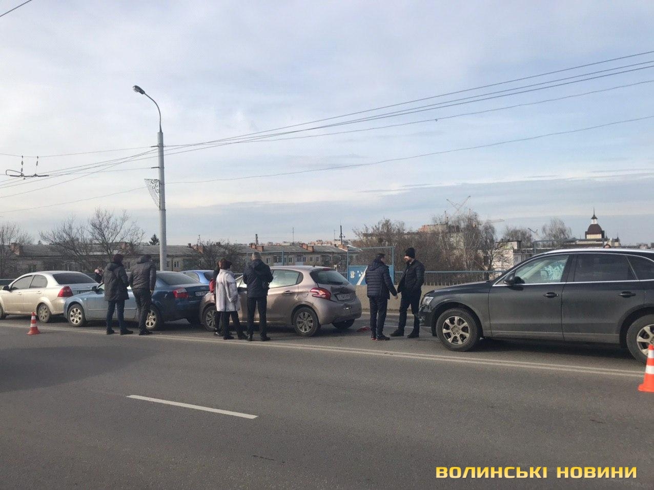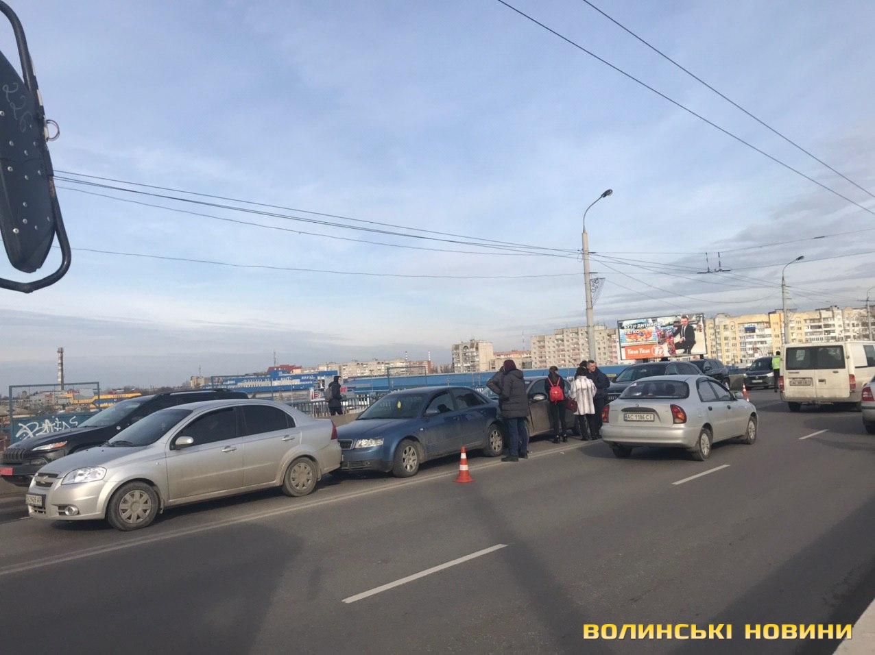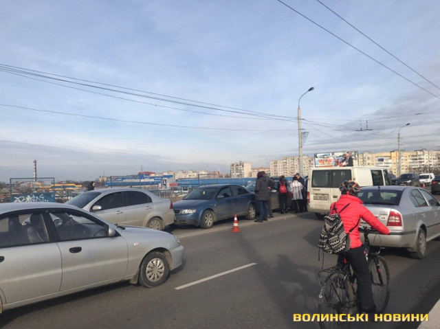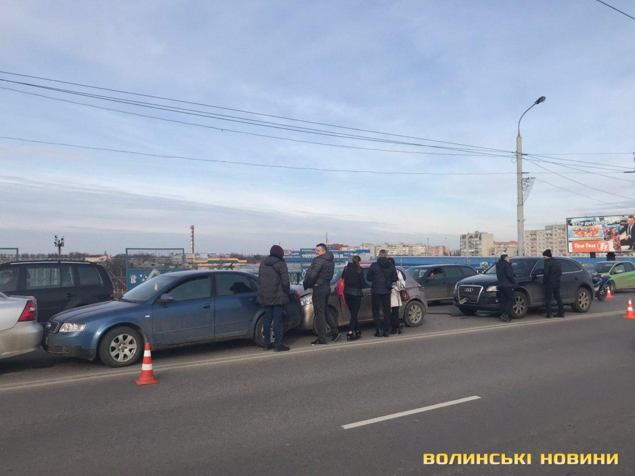 На мосту поблизу гіпермаркету «Там-там» у Луцьку зіткнулись чотири легковики.