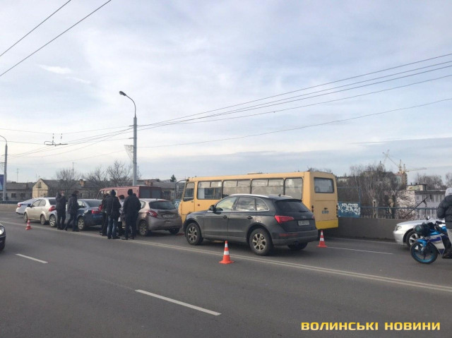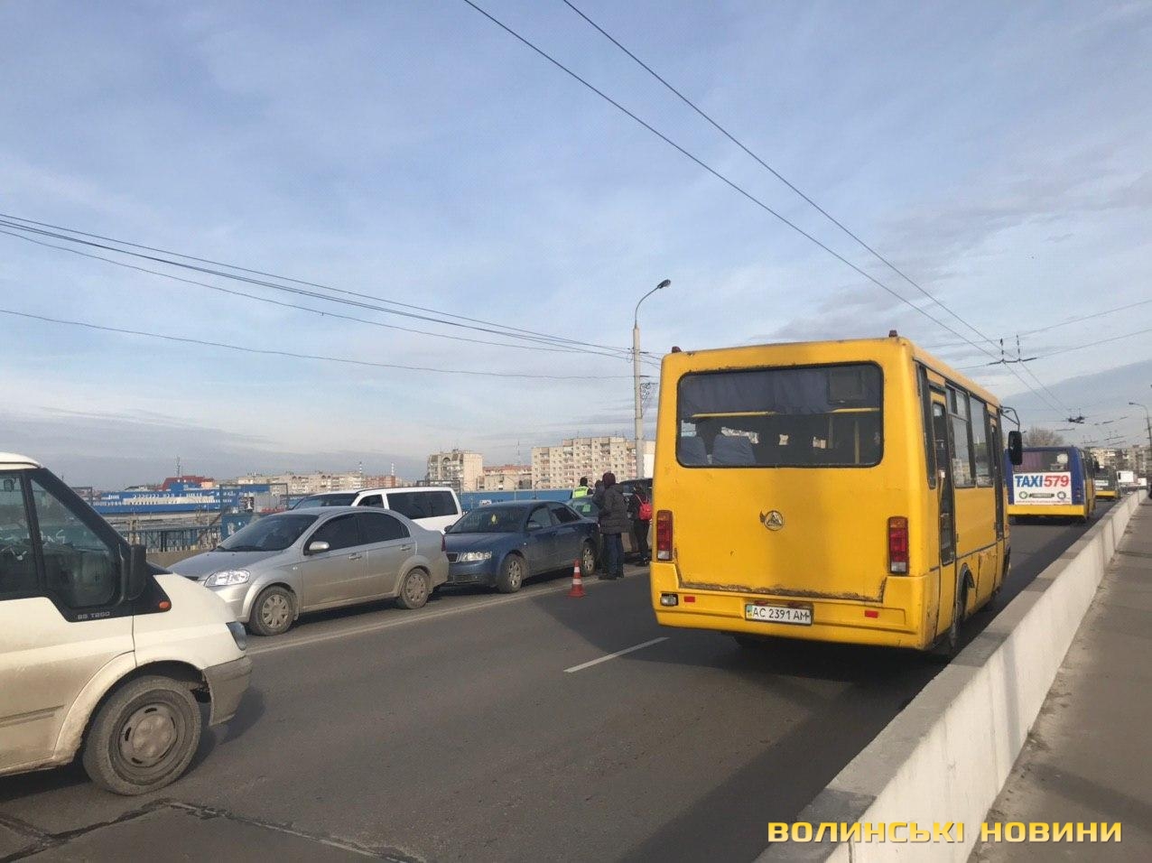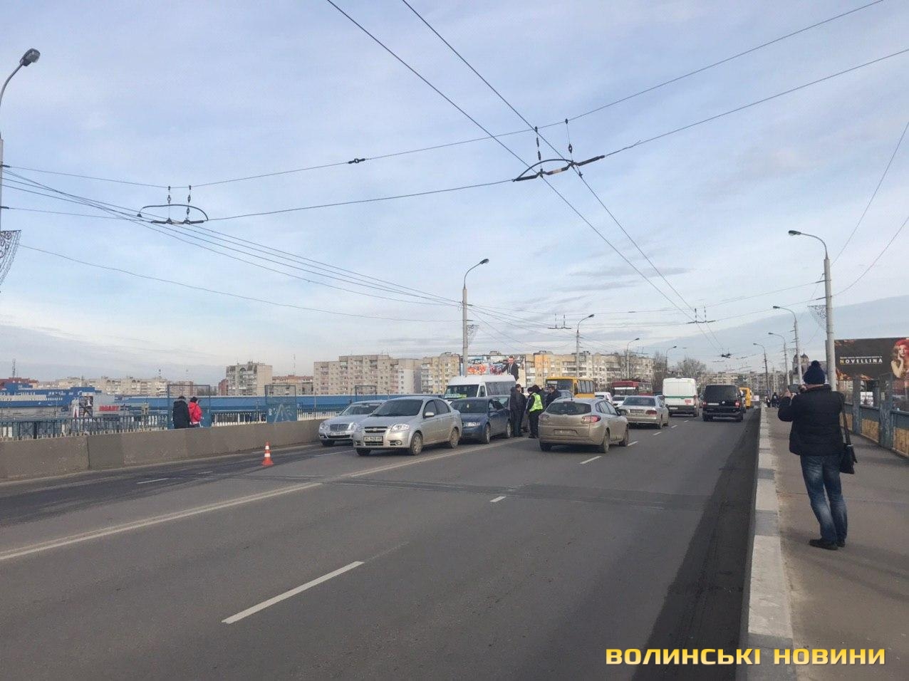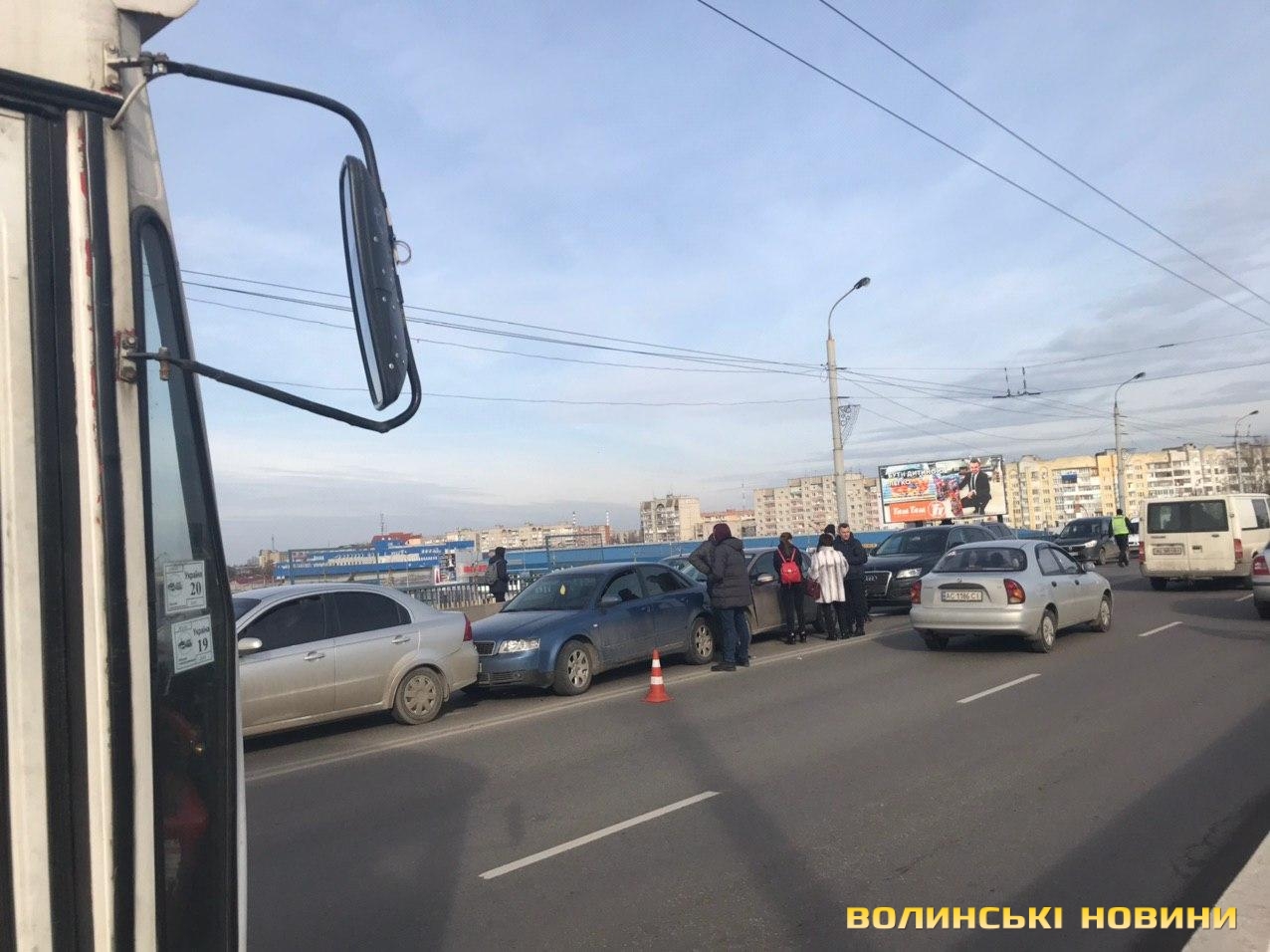 На мосту поблизу гіпермаркету «Там-там» у Луцьку зіткнулись чотири легковики.