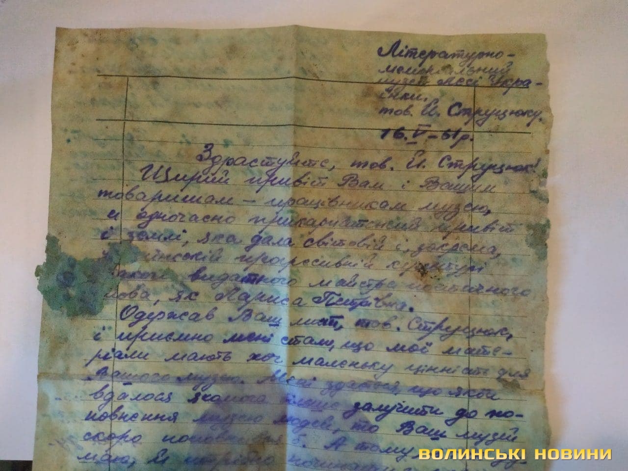 На обійсті Косачів знайшли невідомий лист до волинського письменника